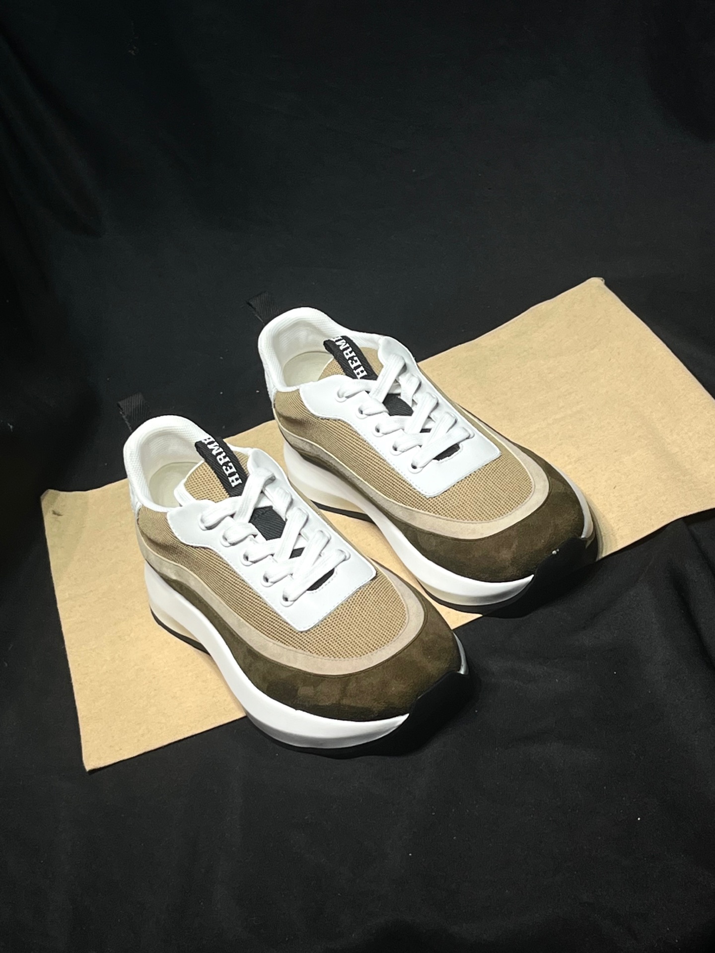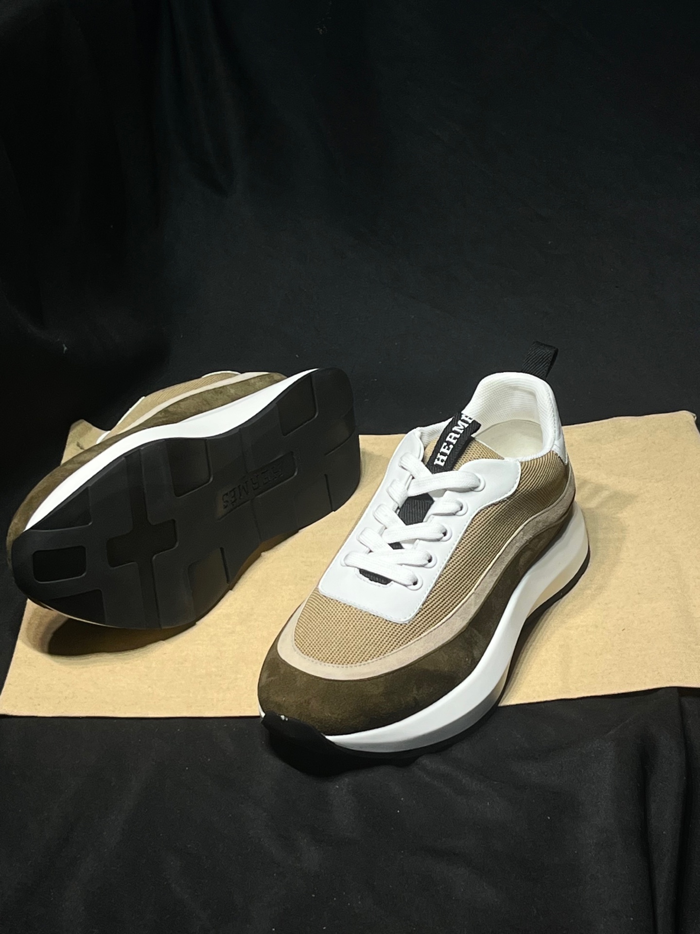 这款鞋子是AAAAA 1:1 质量 (非常棒). 使用了和原版一模一样的材料. 商标部分也保持了和爱马仕/Hermes一样. 图片拍摄是实物鞋子拍摄, 您所收到的实物保证和我们图片一模一样.