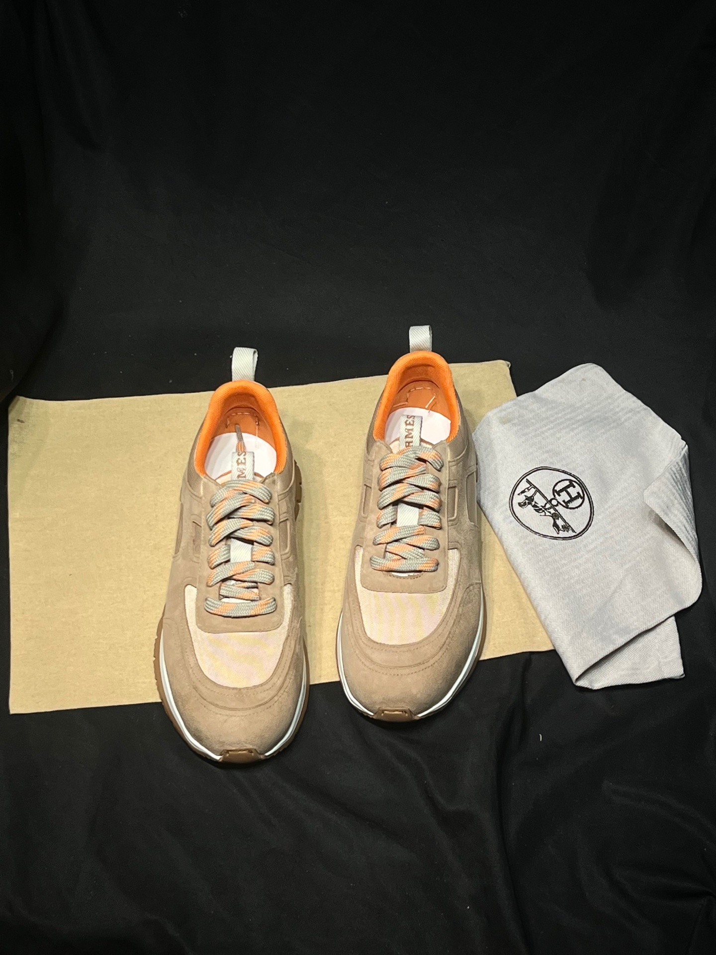 这款鞋子是AAAAA 1:1 质量 (非常棒). 使用了和原版一模一样的材料. 商标部分也保持了和爱马仕/Hermes一样. 图片拍摄是实物鞋子拍摄, 您所收到的实物保证和我们图片一模一样.