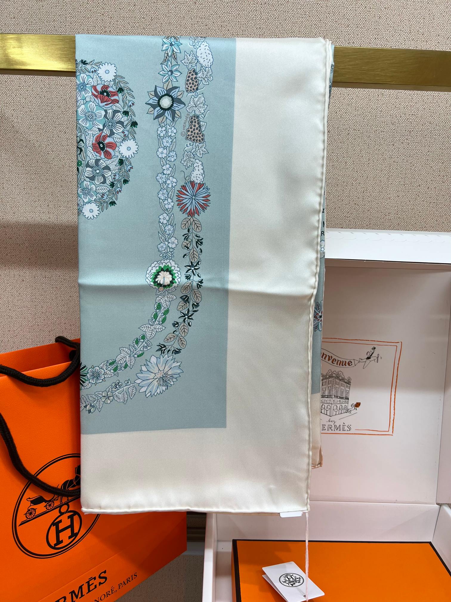 这款围巾是AAAAA 1:1 质量 (非常棒). 使用了和原版一模一样的材料. 商标部分也保持了和爱马仕/Hermes一样. 图片拍摄是实物围巾拍摄, 您所收到的实物保证和我们图片一模一样.