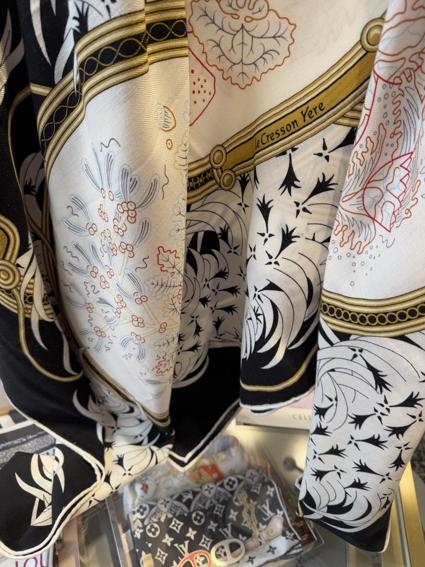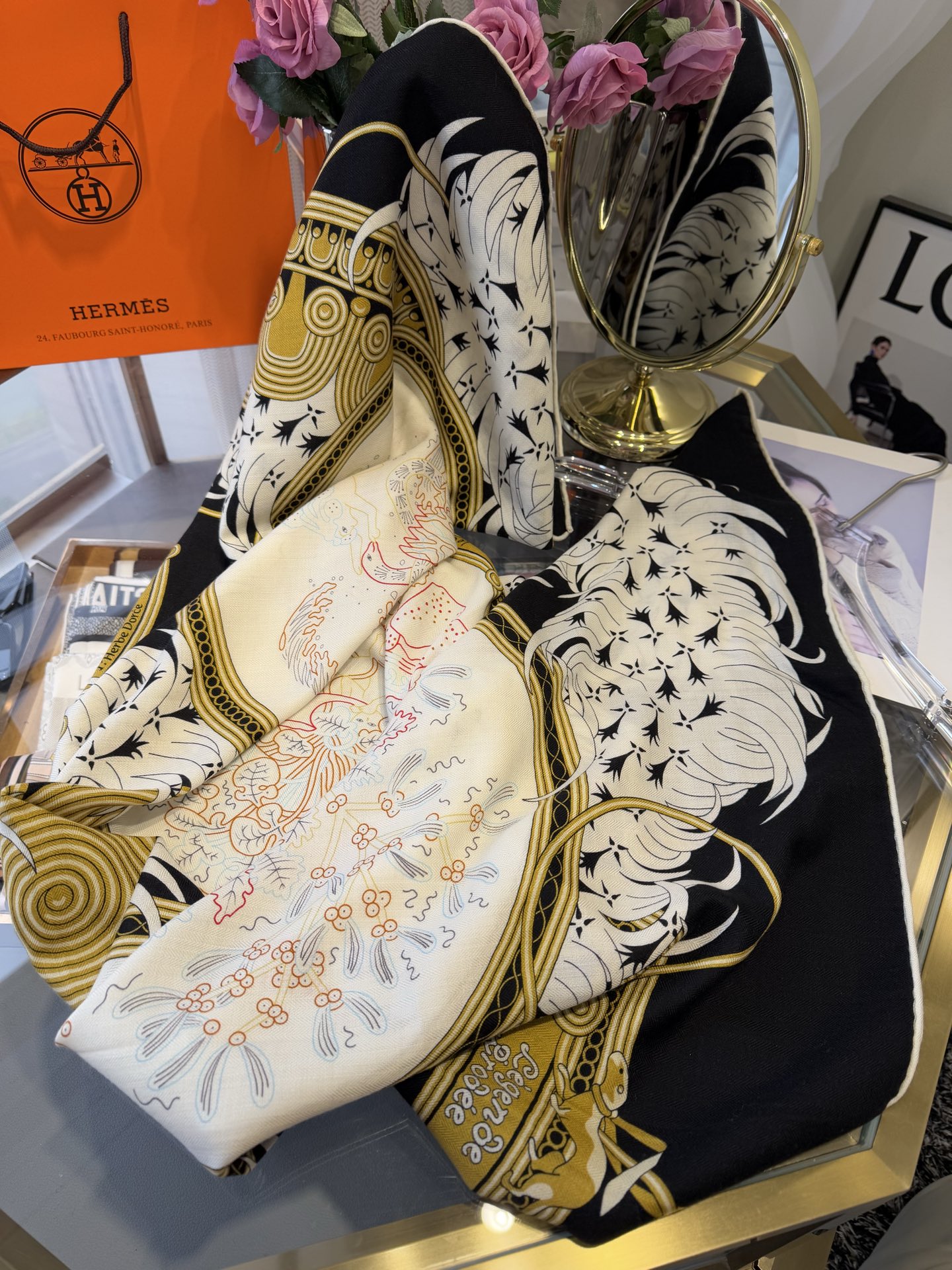 这款围巾是AAAAA 1:1 质量 (非常棒). 使用了和原版一模一样的材料. 商标部分也保持了和爱马仕/Hermes一样. 图片拍摄是实物围巾拍摄, 您所收到的实物保证和我们图片一模一样.
