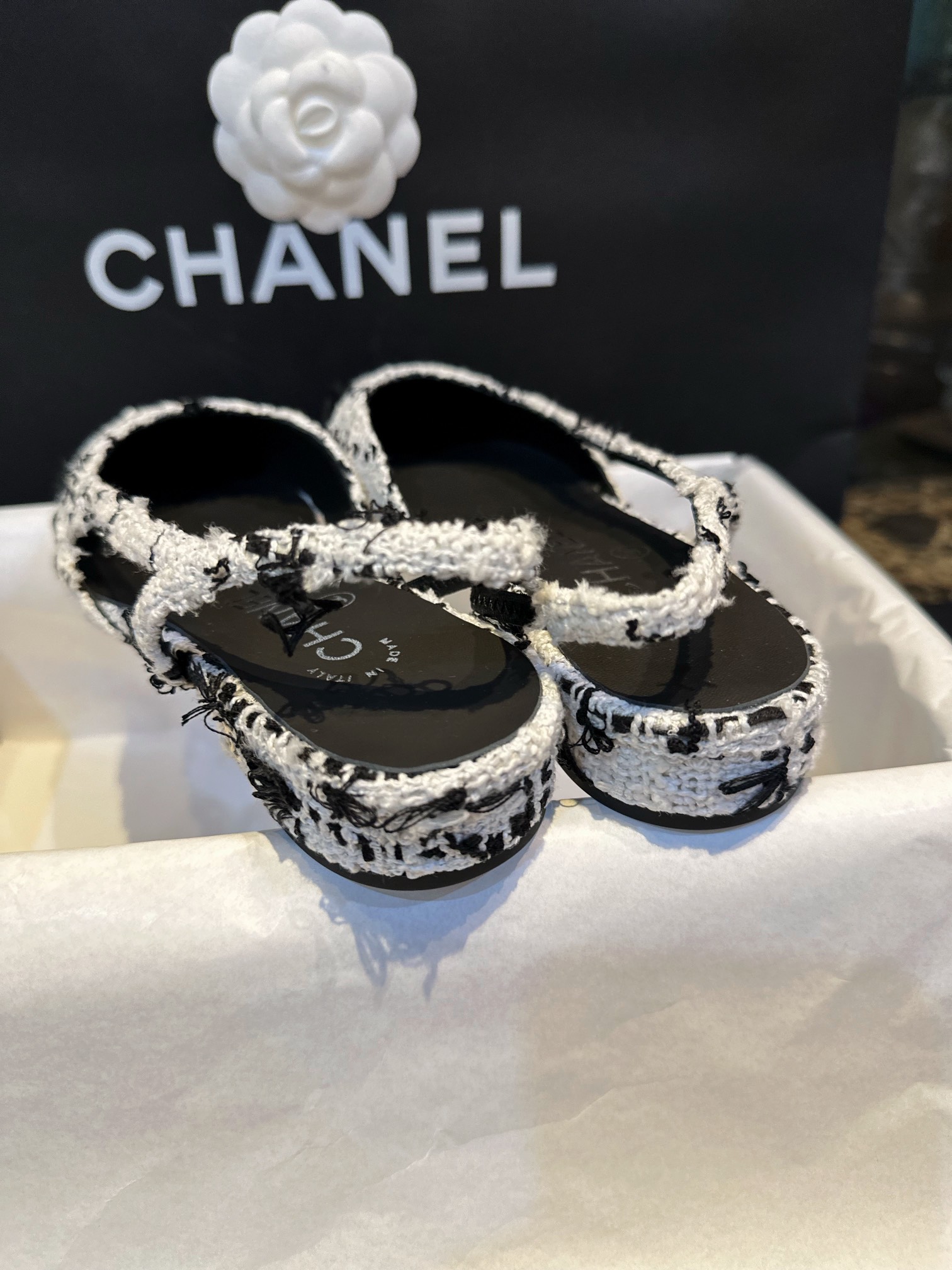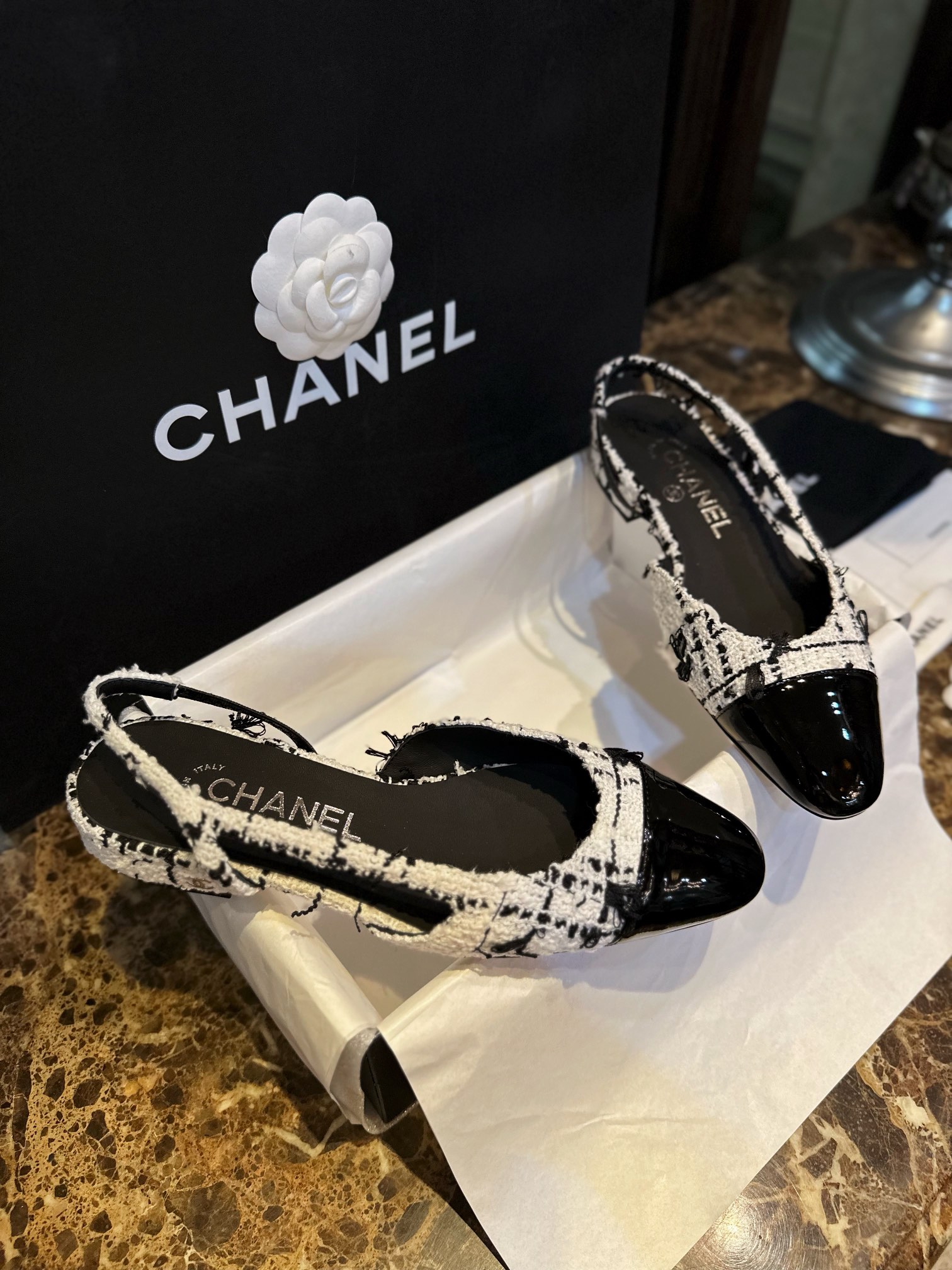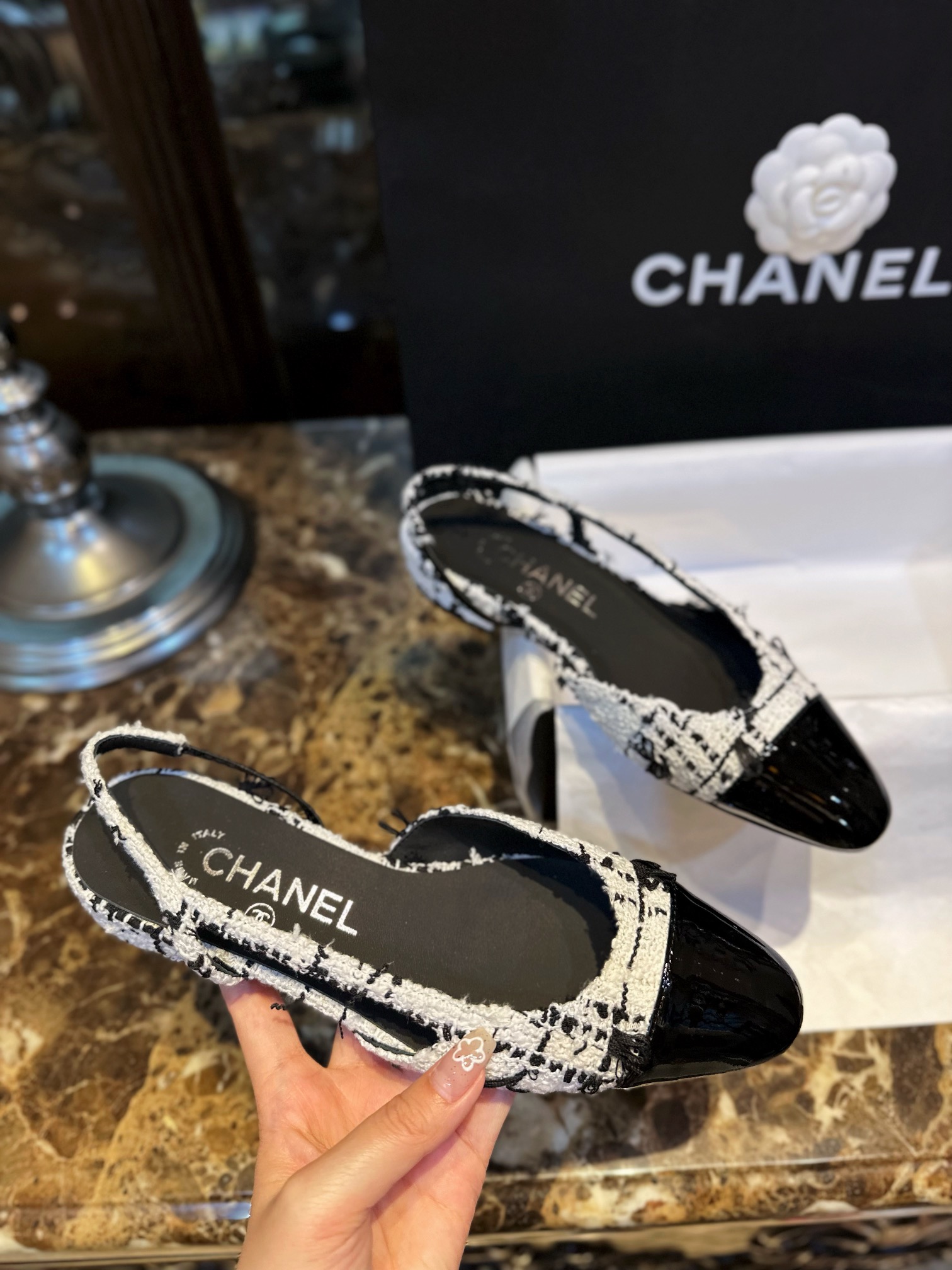 这款鞋子是AAAAA 1:1 质量 (非常棒). 使用了和原版一模一样的材料. 商标部分也保持了和香奈儿/Chanel一样. 图片拍摄是实物鞋子拍摄, 您所收到的实物保证和我们图片一模一样.