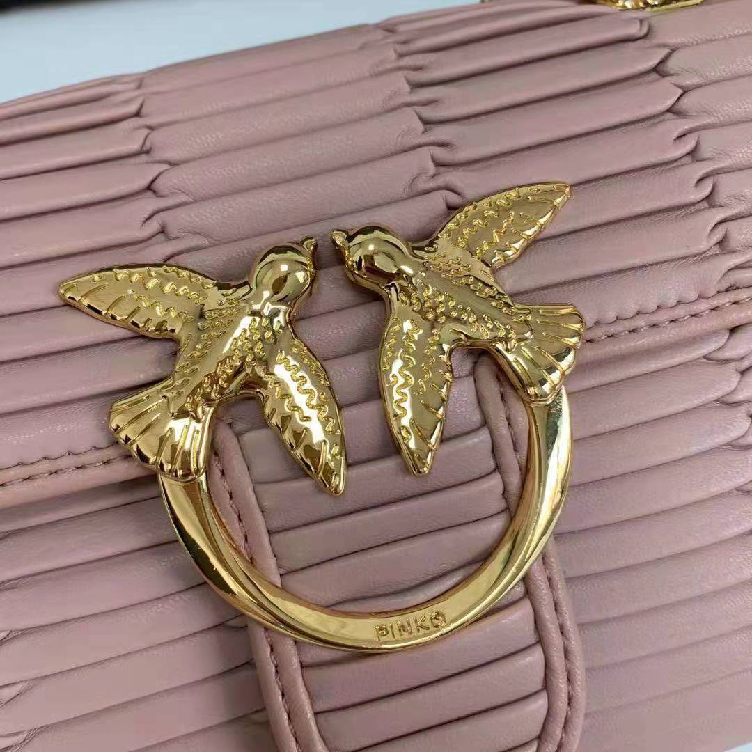 这款包包是AAAAA 1:1 质量 (非常棒). 使用了和原版一模一样的材料. 商标部分也保持了和PINKO一样. 图片拍摄是实物包包拍摄, 您所收到的实物保证和我们图片一模一样.