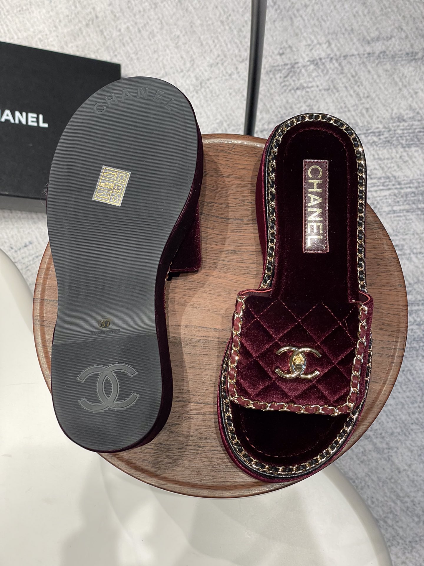 这款鞋子是AAAAA 1:1 质量 (非常棒). 使用了和原版一模一样的材料. 商标部分也保持了和香奈儿/Chanel一样. 图片拍摄是实物鞋子拍摄, 您所收到的实物保证和我们图片一模一样.