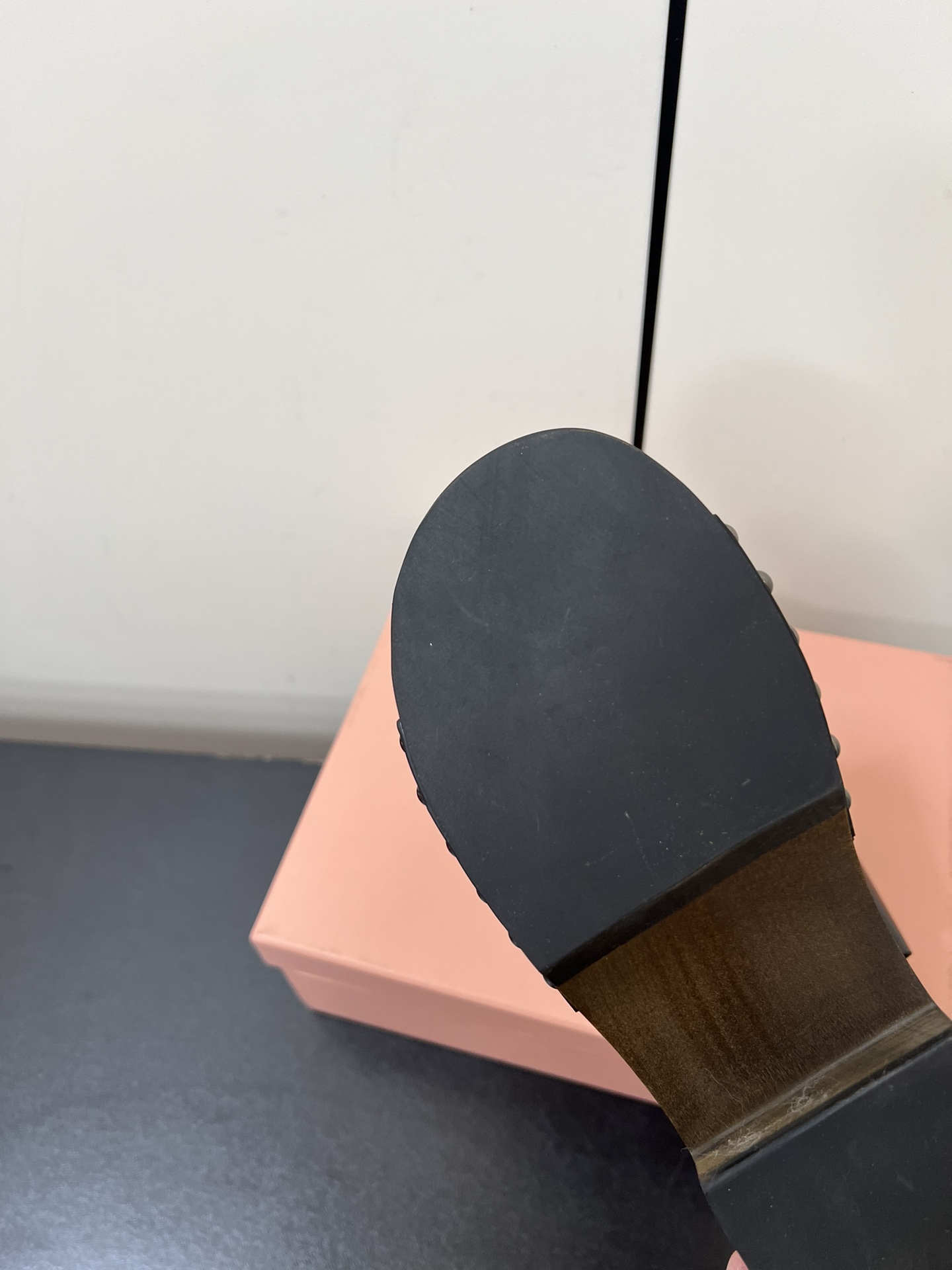 这款鞋子是AAAAA 1:1 质量 (非常棒). 使用了和原版一模一样的材料. 商标部分也保持了和缪缪/Miu Miu一样. 图片拍摄是实物鞋子拍摄, 您所收到的实物保证和我们图片一模一样.