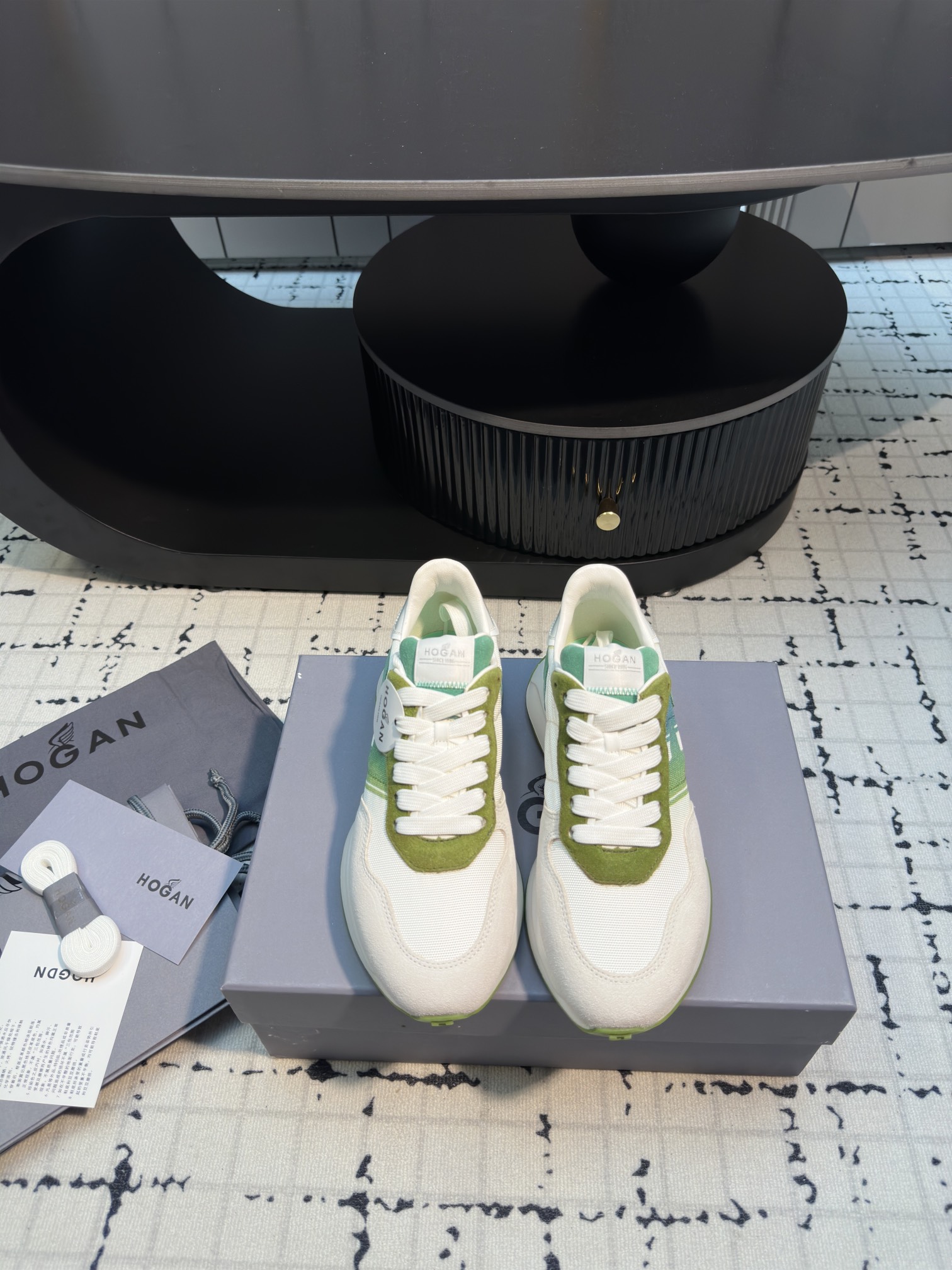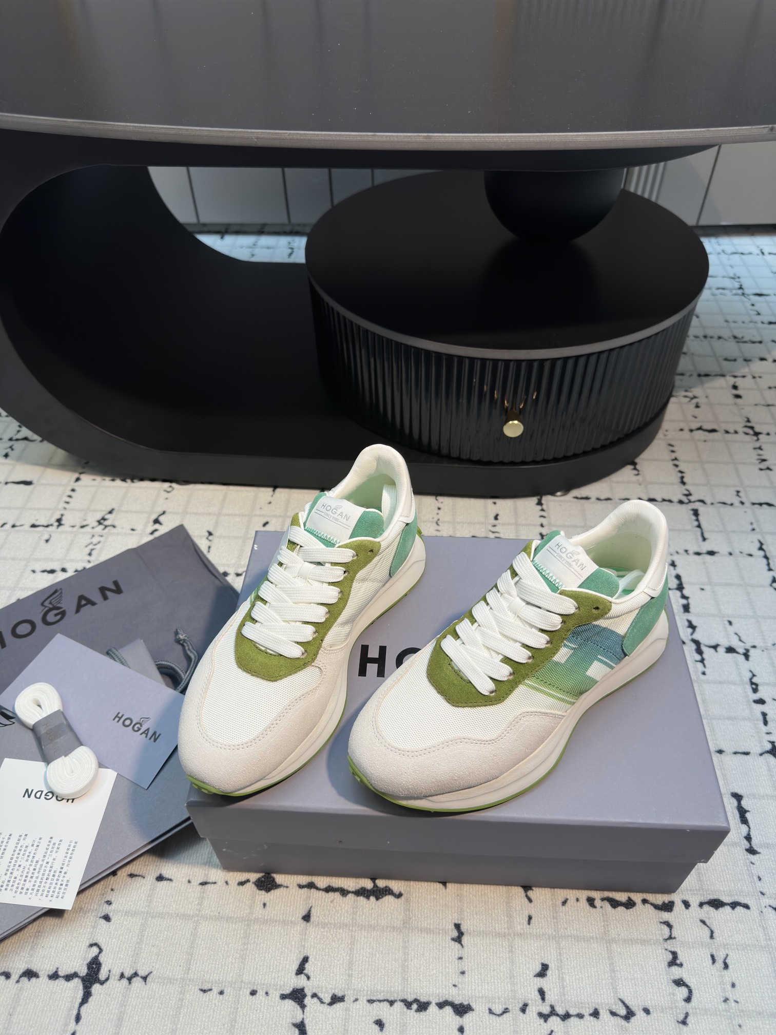 这款鞋子是AAAAA 1:1 质量 (非常棒). 使用了和原版一模一样的材料. 商标部分也保持了和Hogan一样. 图片拍摄是实物鞋子拍摄, 您所收到的实物保证和我们图片一模一样.