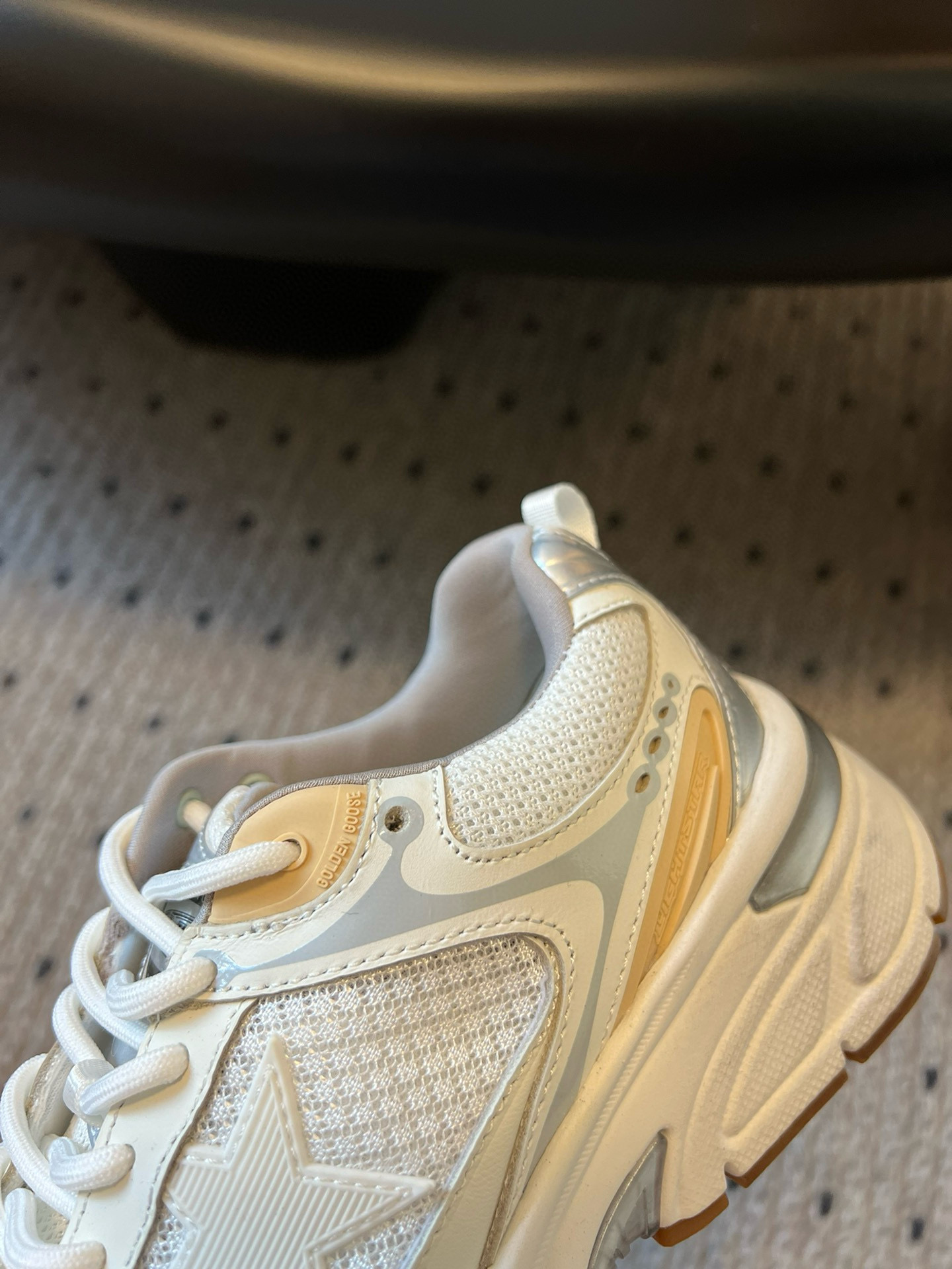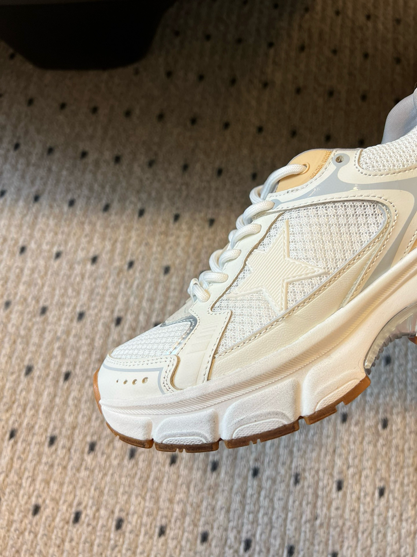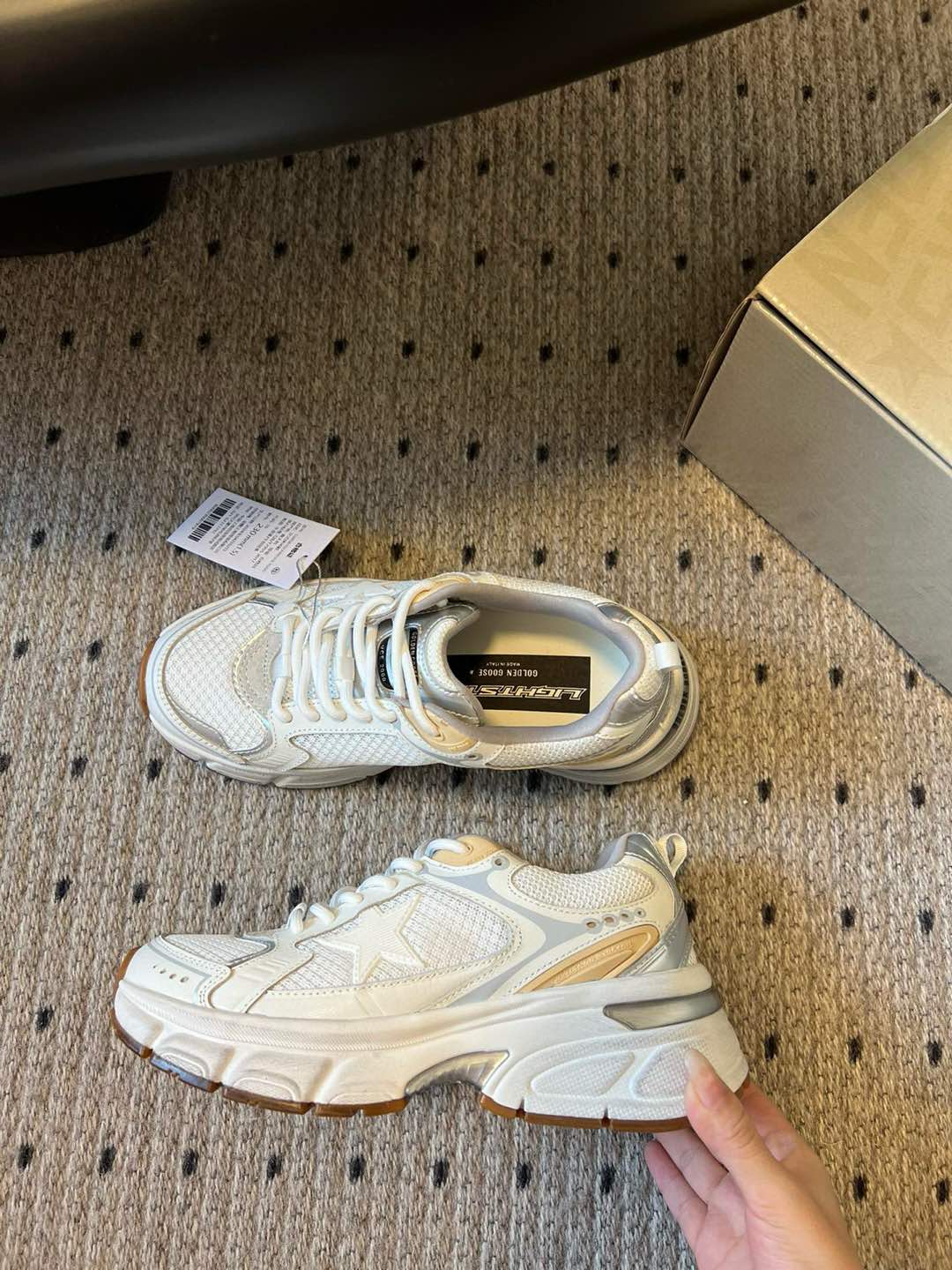 这款鞋子是AAAAA 1:1 质量 (非常棒). 使用了和原版一模一样的材料. 商标部分也保持了和Golden Goose一样. 图片拍摄是实物鞋子拍摄, 您所收到的实物保证和我们图片一模一样.