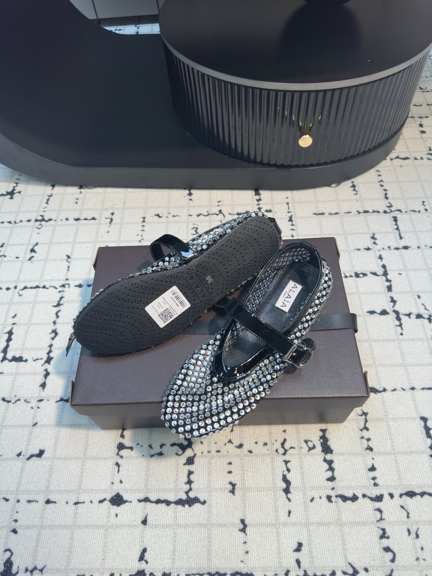 这款鞋子是AAAAA 1:1 质量 (非常棒). 使用了和原版一模一样的材料. 商标部分也保持了和Alaia一样. 图片拍摄是实物鞋子拍摄, 您所收到的实物保证和我们图片一模一样.