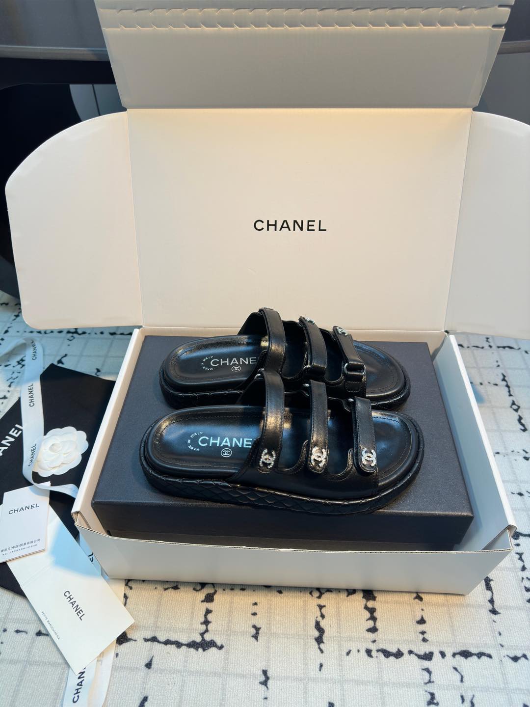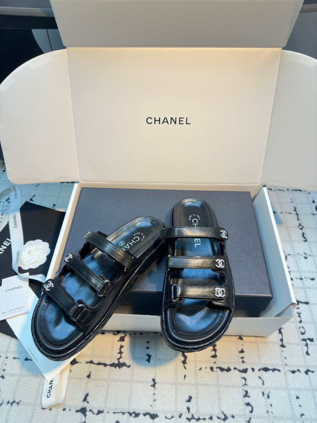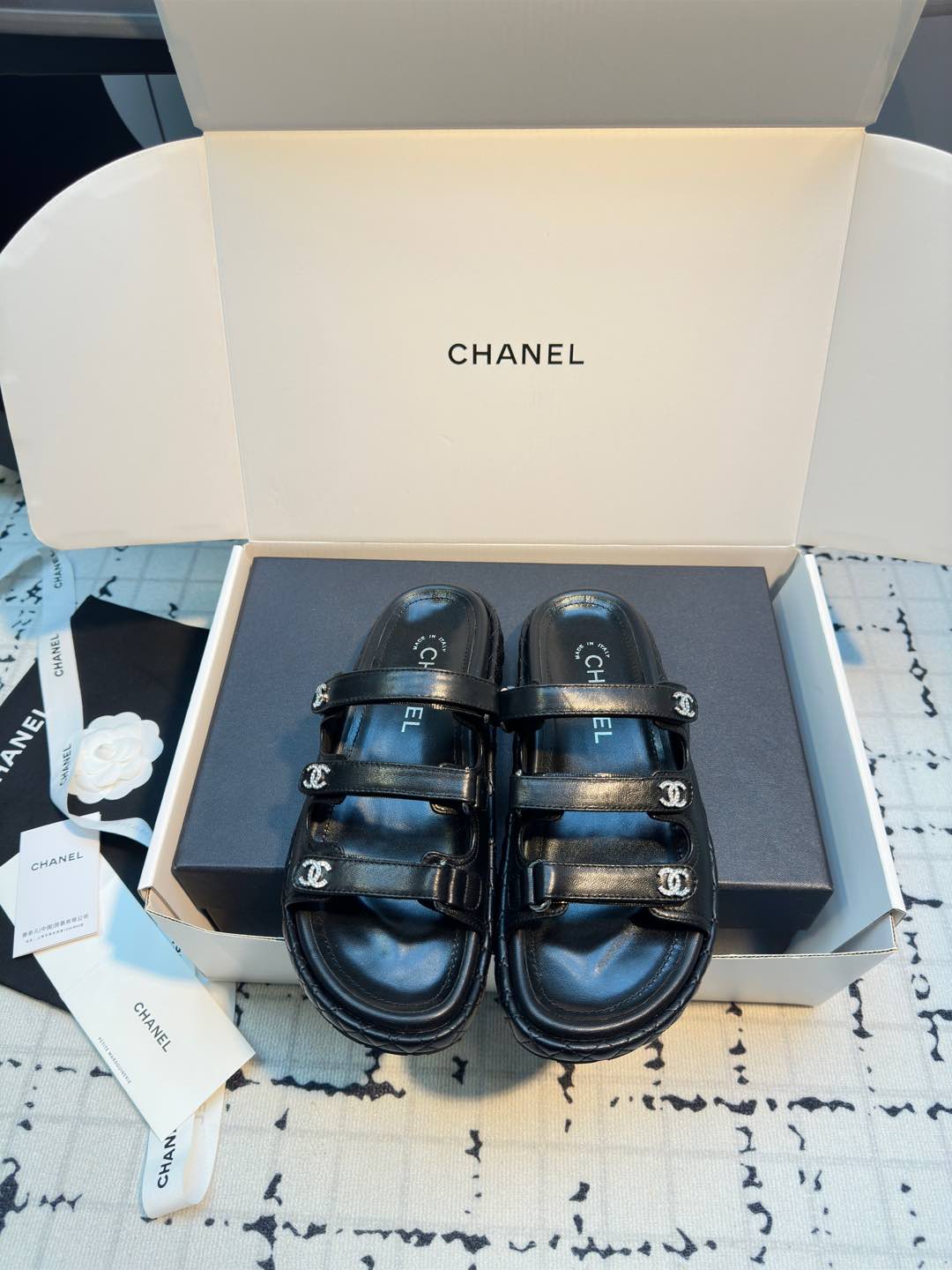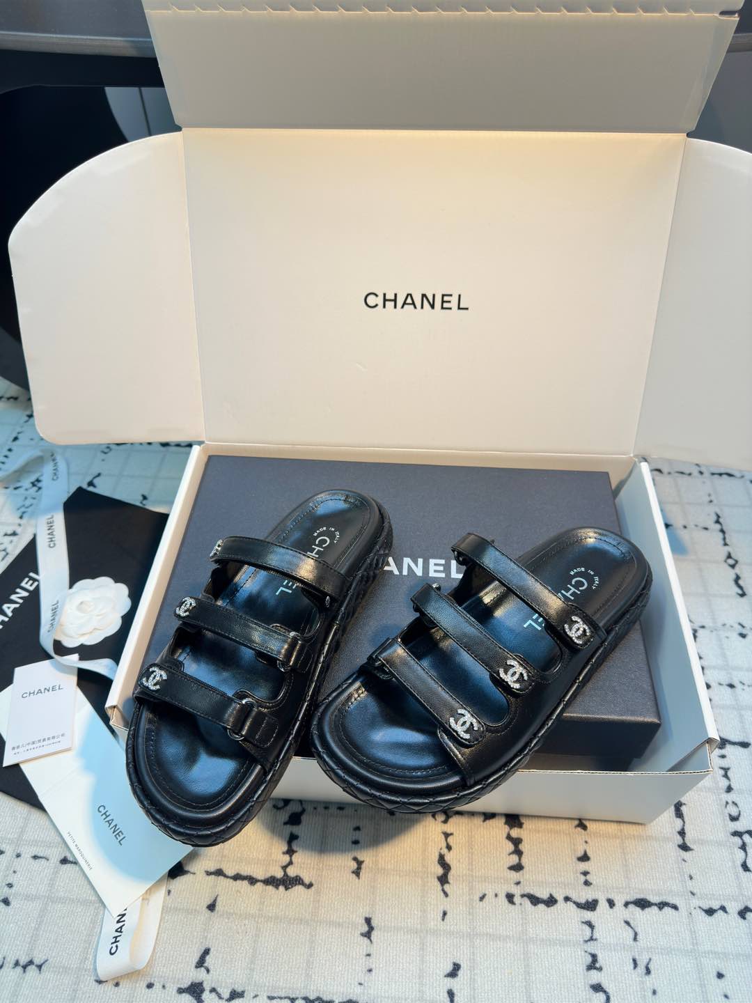 这款鞋子是AAAAA 1:1 质量 (非常棒). 使用了和原版一模一样的材料. 商标部分也保持了和香奈儿/Chanel一样. 图片拍摄是实物鞋子拍摄, 您所收到的实物保证和我们图片一模一样.