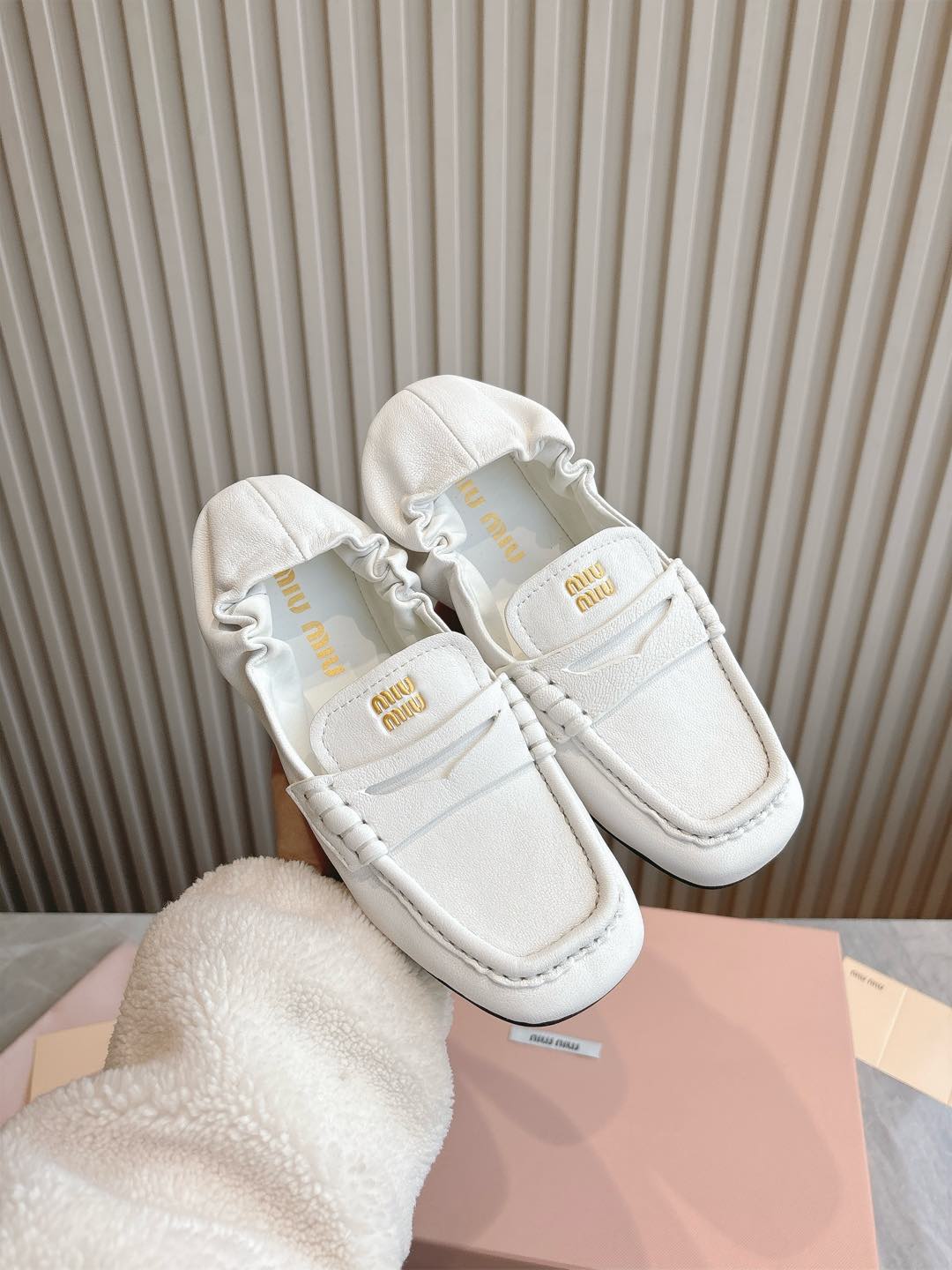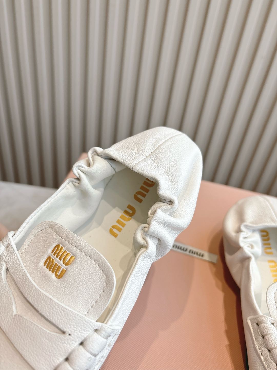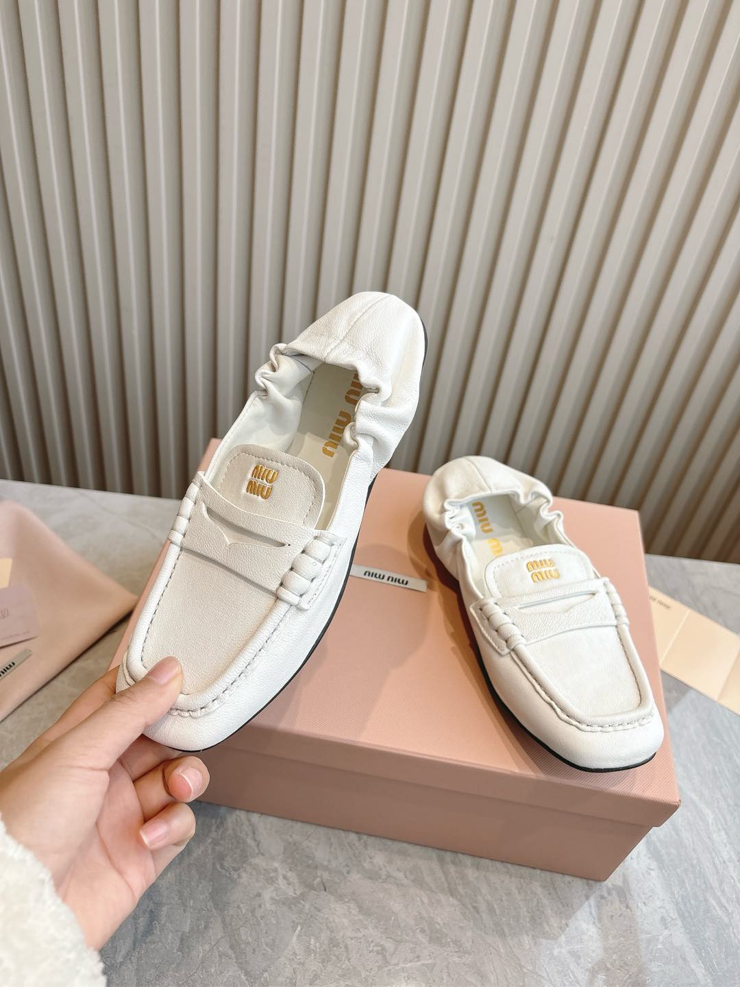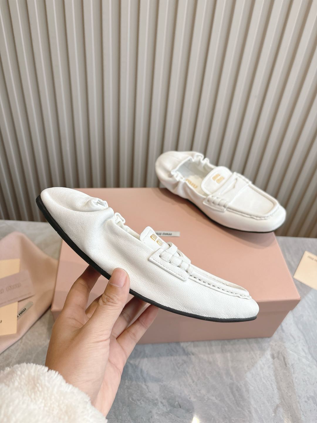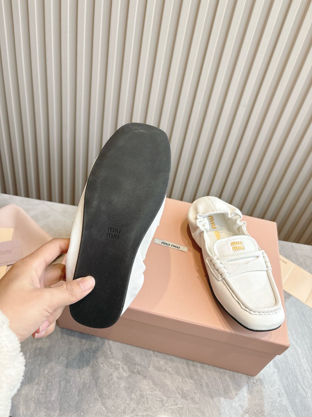 这款鞋子是AAAAA 1:1 质量 (非常棒). 使用了和原版一模一样的材料. 商标部分也保持了和缪缪/Miu Miu一样. 图片拍摄是实物鞋子拍摄, 您所收到的实物保证和我们图片一模一样.