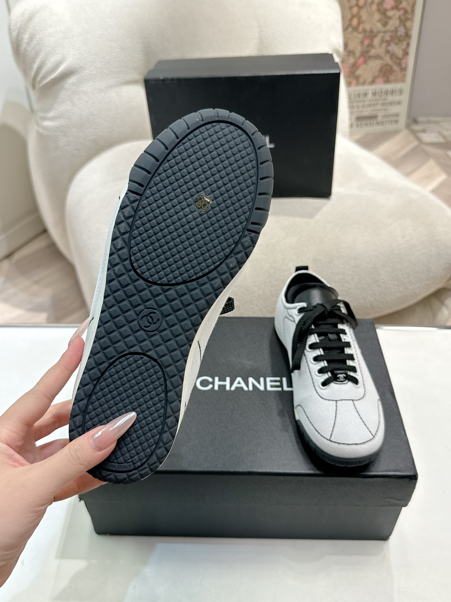 这款鞋子是AAAAA 1:1 质量 (非常棒). 使用了和原版一模一样的材料. 商标部分也保持了和香奈儿/Chanel一样. 图片拍摄是实物鞋子拍摄, 您所收到的实物保证和我们图片一模一样.