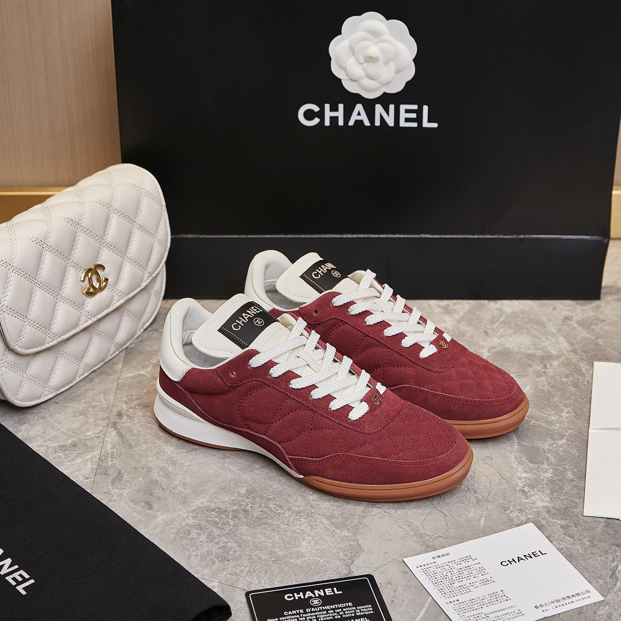 这款鞋子是AAAAA 1:1 质量 (非常棒). 使用了和原版一模一样的材料. 商标部分也保持了和香奈儿/Chanel一样. 图片拍摄是实物鞋子拍摄, 您所收到的实物保证和我们图片一模一样.