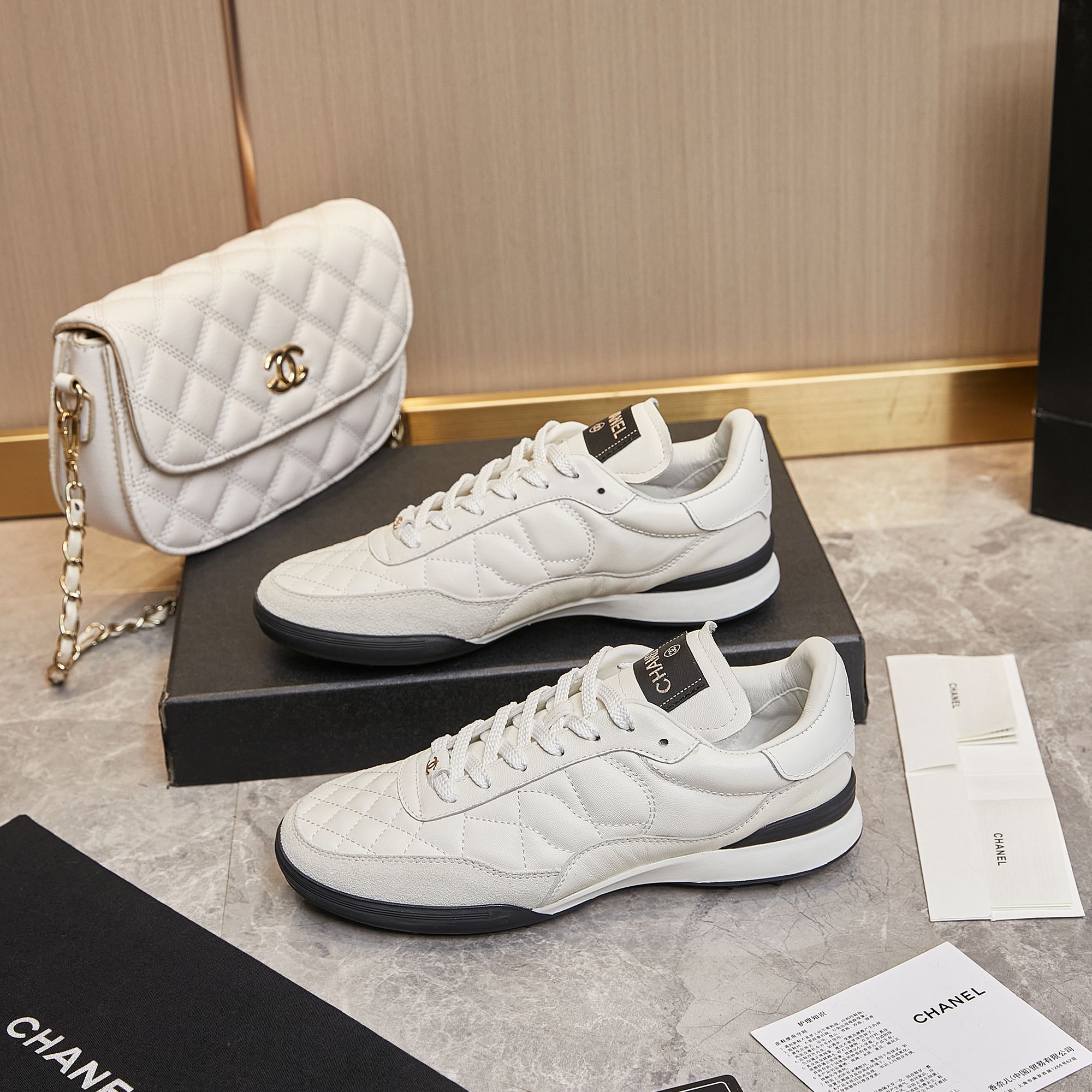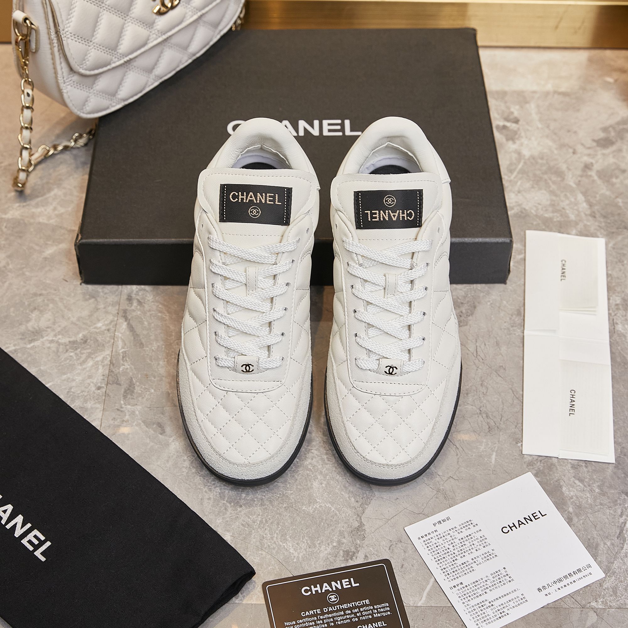 这款鞋子是AAAAA 1:1 质量 (非常棒). 使用了和原版一模一样的材料. 商标部分也保持了和香奈儿/Chanel一样. 图片拍摄是实物鞋子拍摄, 您所收到的实物保证和我们图片一模一样.