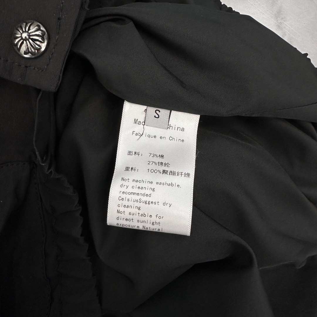 这款衣服是AAAAA 1:1 质量 (非常棒). 使用了和原版一模一样的材料. 商标部分也保持了和克罗心/Chrome Hearts一样. 图片拍摄是实物衣服拍摄, 您所收到的实物保证和我们图片一模一样.