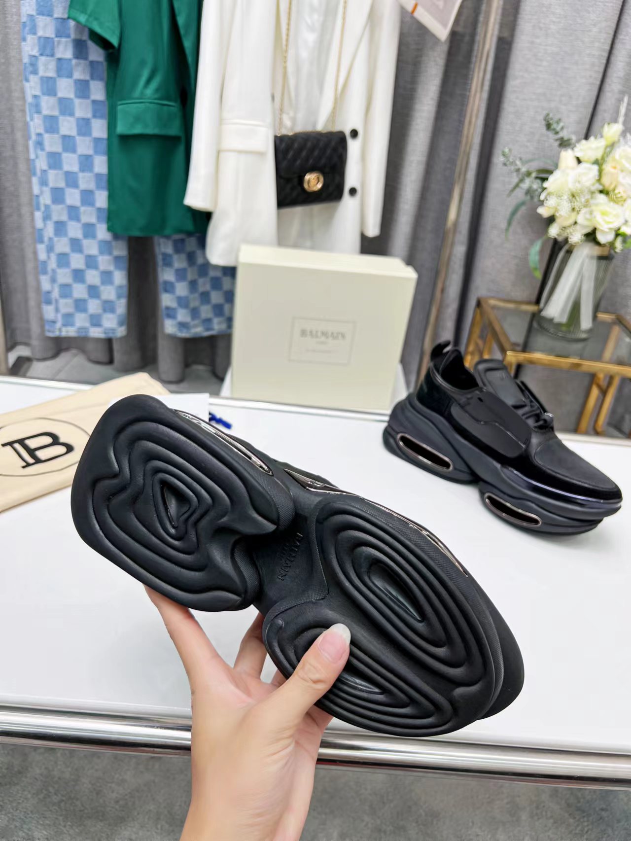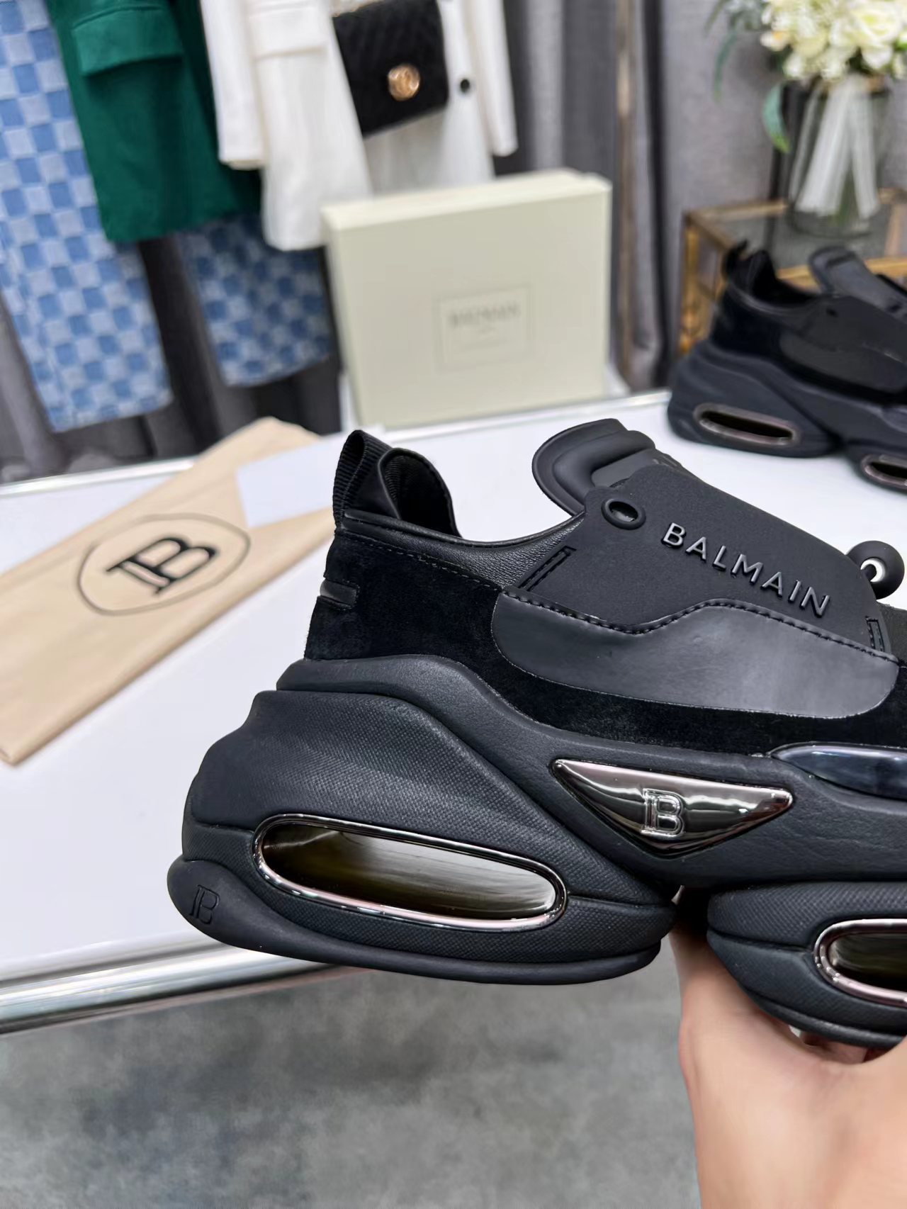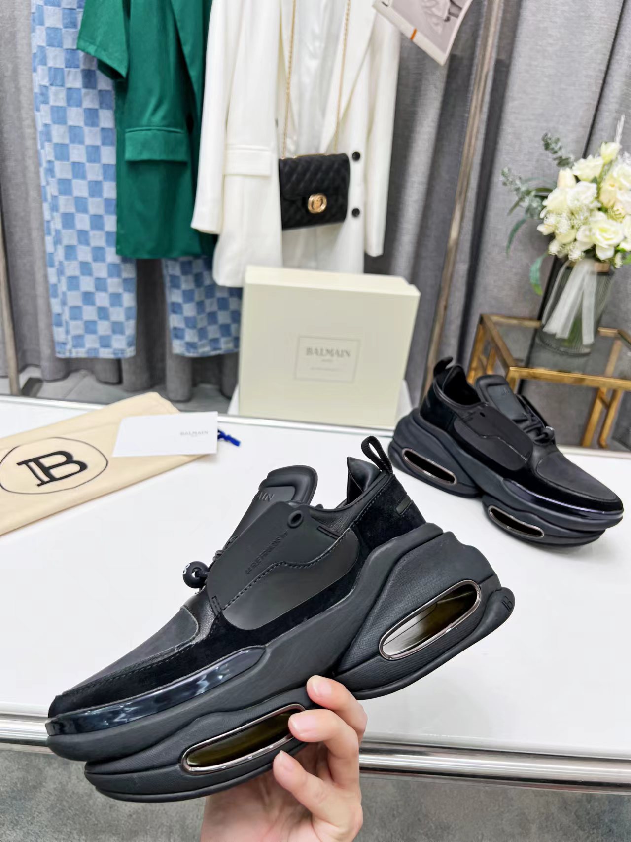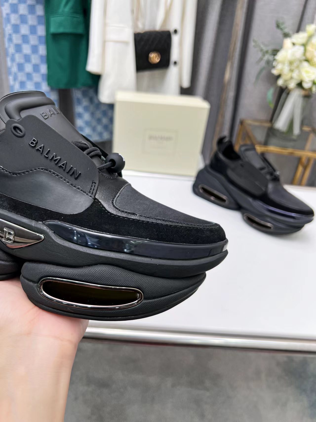 这款鞋子是AAAAA 1:1 质量 (非常棒). 使用了和原版一模一样的材料. 商标部分也保持了和巴尔曼/Balmain一样. 图片拍摄是实物鞋子拍摄, 您所收到的实物保证和我们图片一模一样.