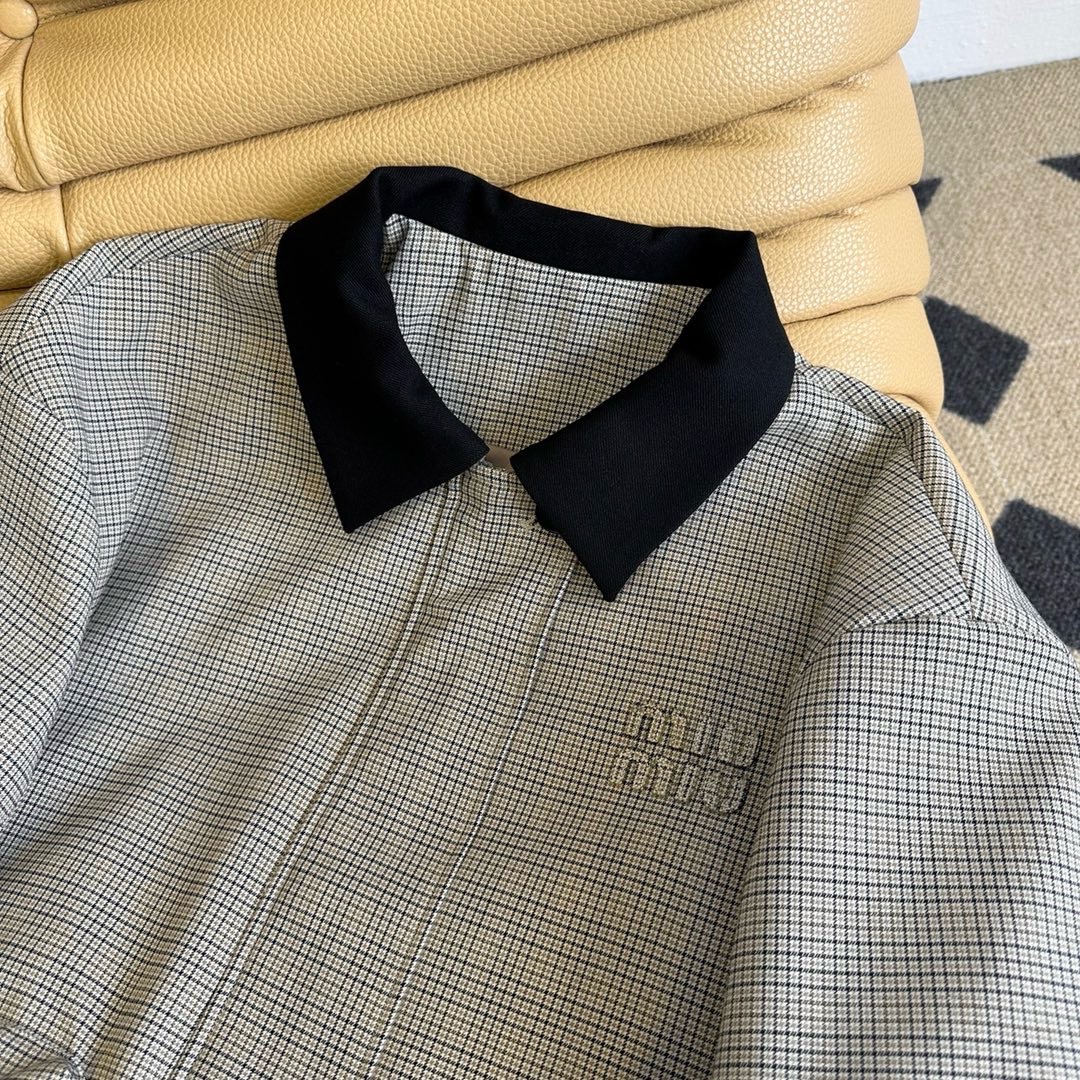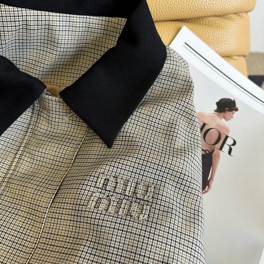 这款衣服是AAAAA 1:1 质量 (非常棒). 使用了和原版一模一样的材料. 商标部分也保持了和缪缪/Miu Miu一样. 图片拍摄是实物衣服拍摄, 您所收到的实物保证和我们图片一模一样.