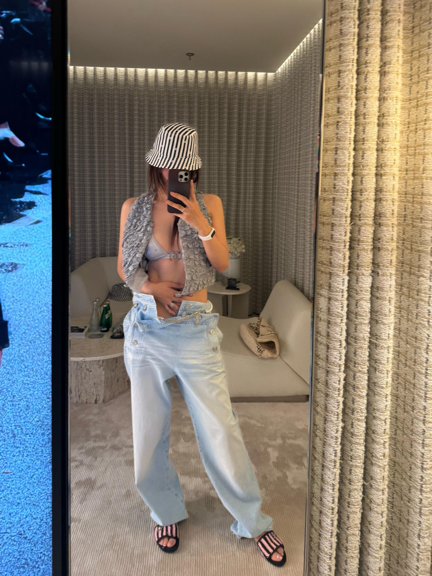 这款衣服是AAAAA 1:1 质量 (非常棒). 使用了和原版一模一样的材料. 商标部分也保持了和缪缪/Miu Miu一样. 图片拍摄是实物衣服拍摄, 您所收到的实物保证和我们图片一模一样.
