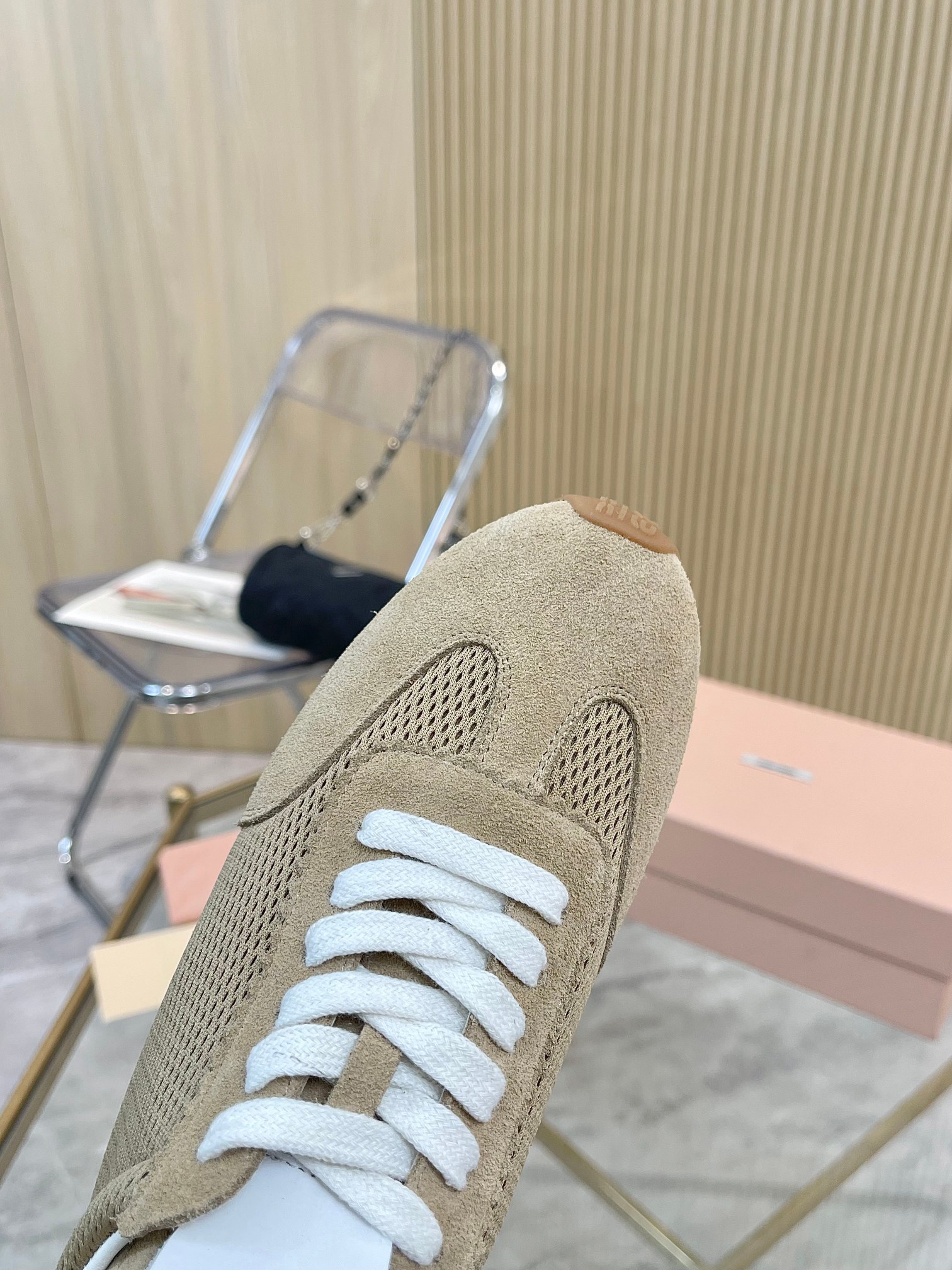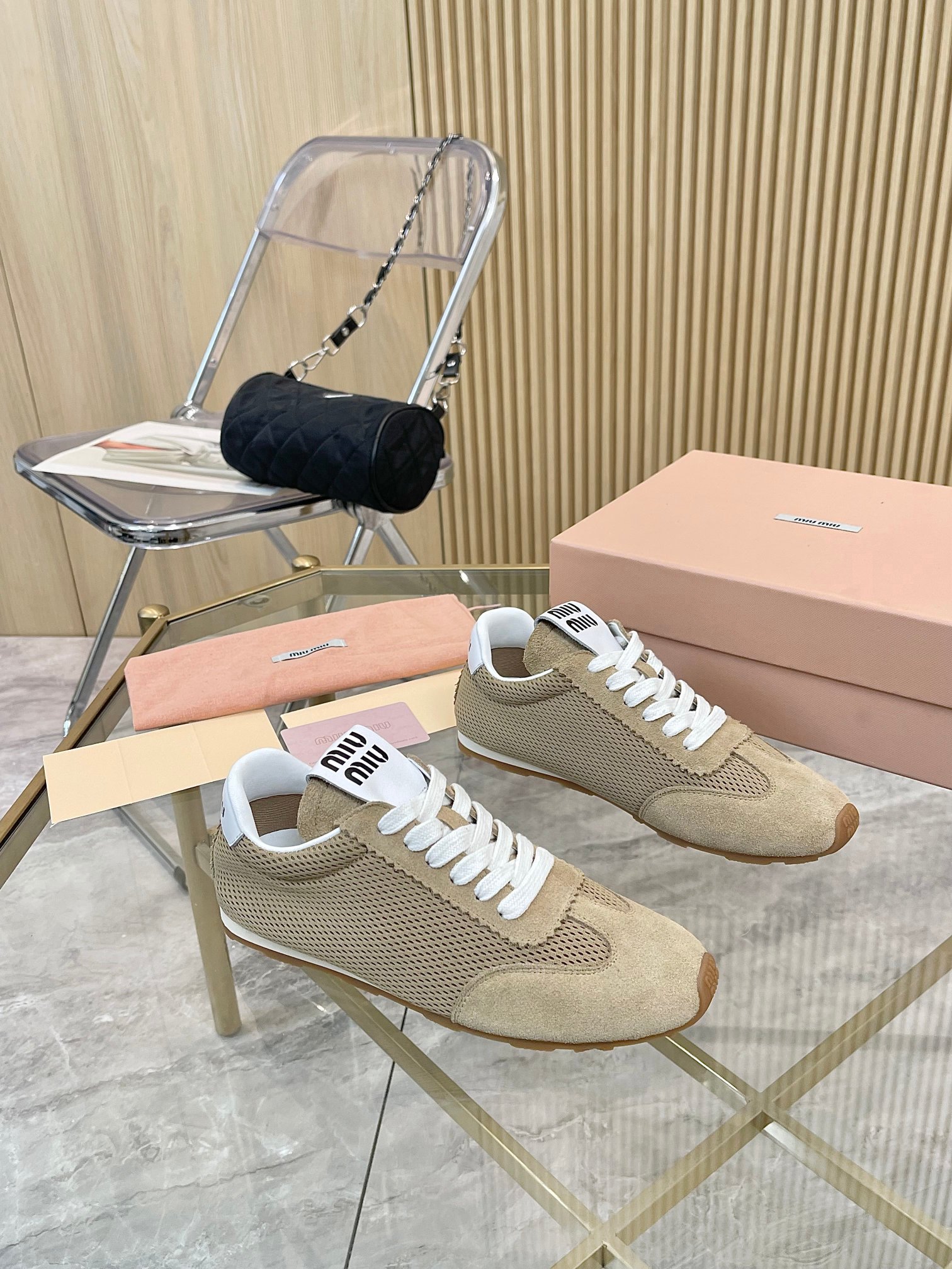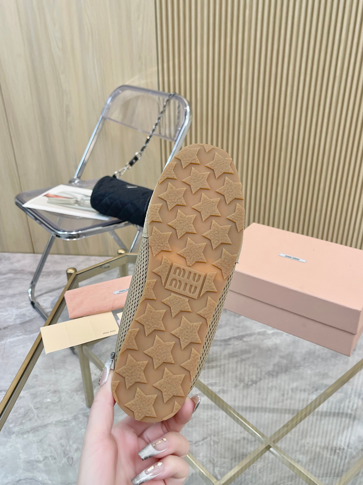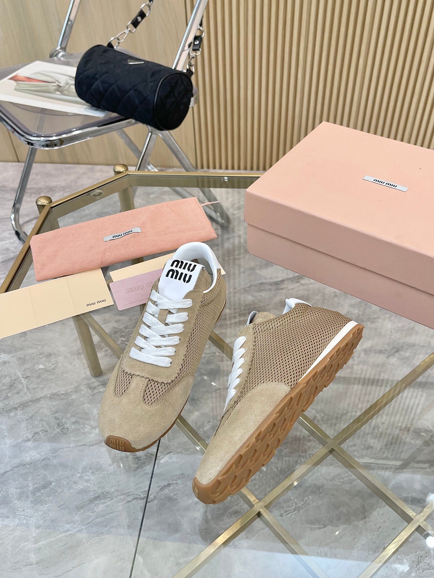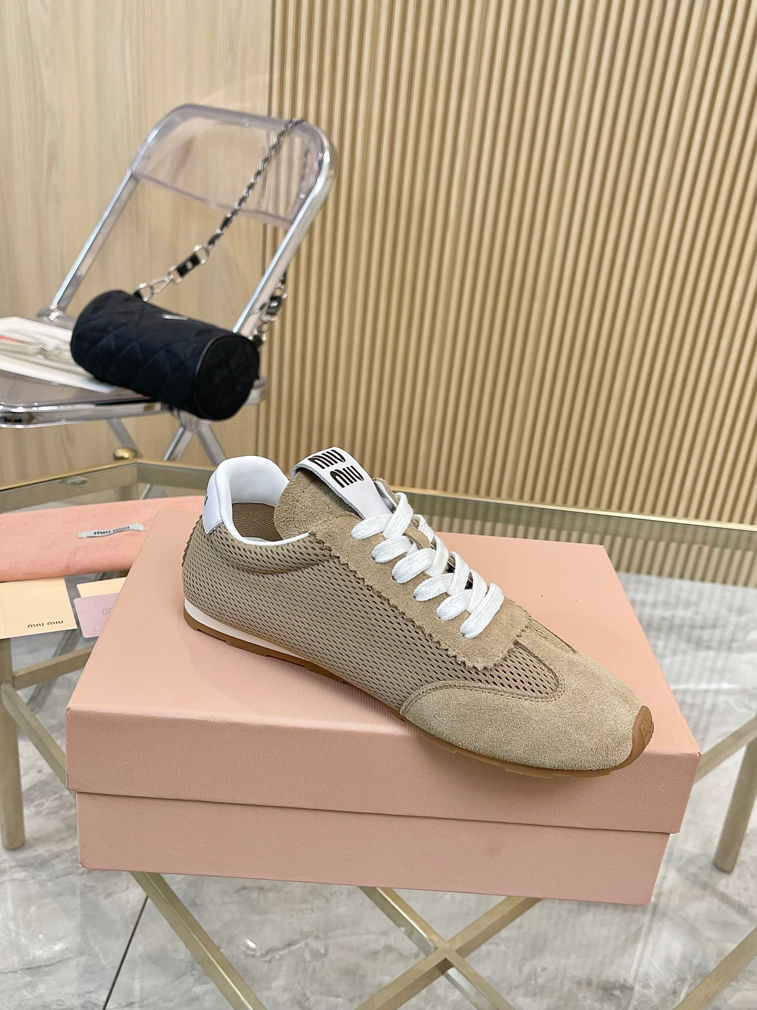 这款鞋子是AAAAA 1:1 质量 (非常棒). 使用了和原版一模一样的材料. 商标部分也保持了和缪缪/Miu Miu一样. 图片拍摄是实物鞋子拍摄, 您所收到的实物保证和我们图片一模一样.
