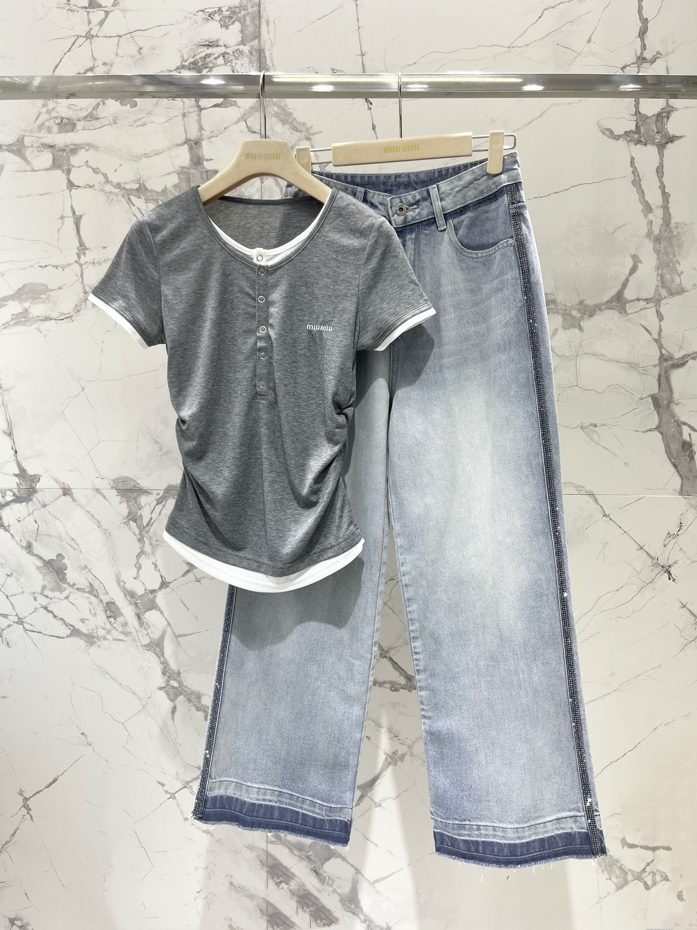 这款衣服是AAAAA 1:1 质量 (非常棒). 使用了和原版一模一样的材料. 商标部分也保持了和缪缪/Miu Miu一样. 图片拍摄是实物衣服拍摄, 您所收到的实物保证和我们图片一模一样.