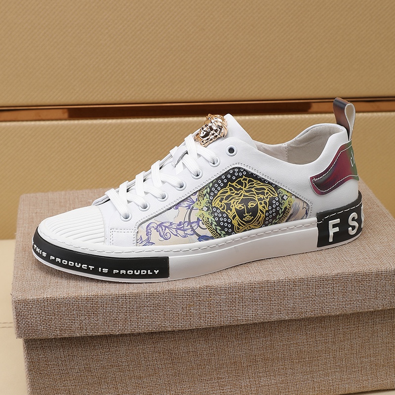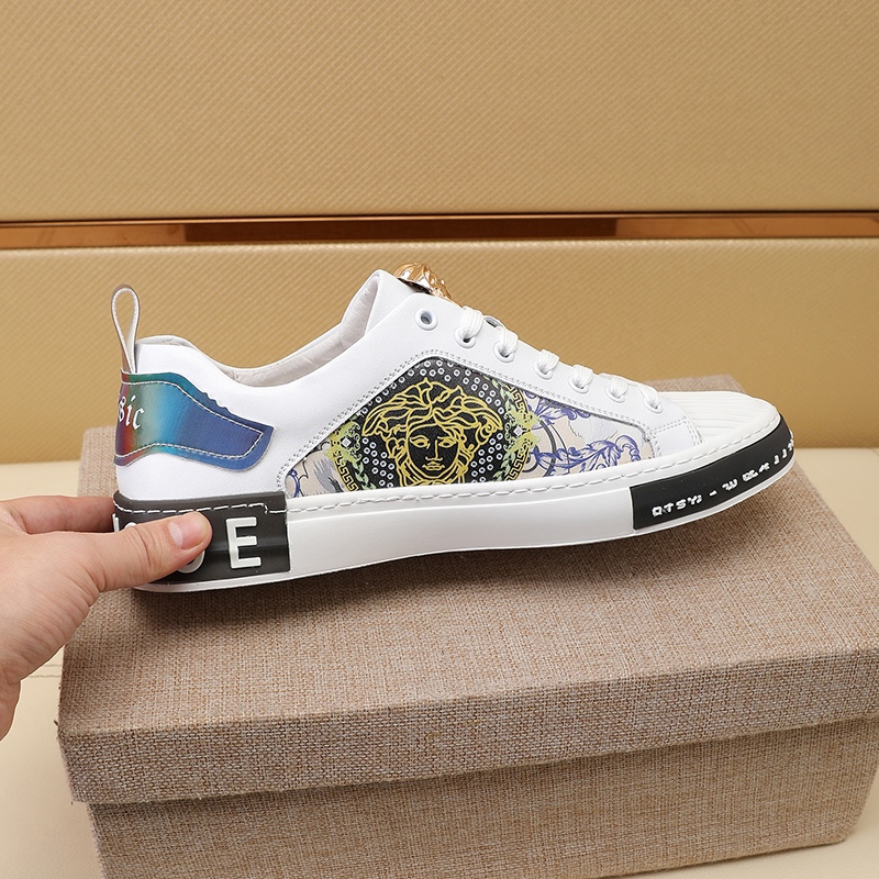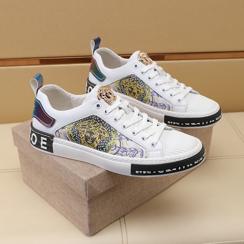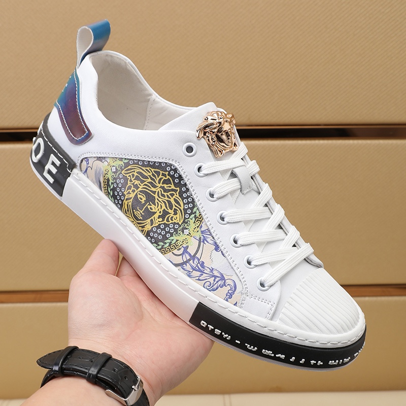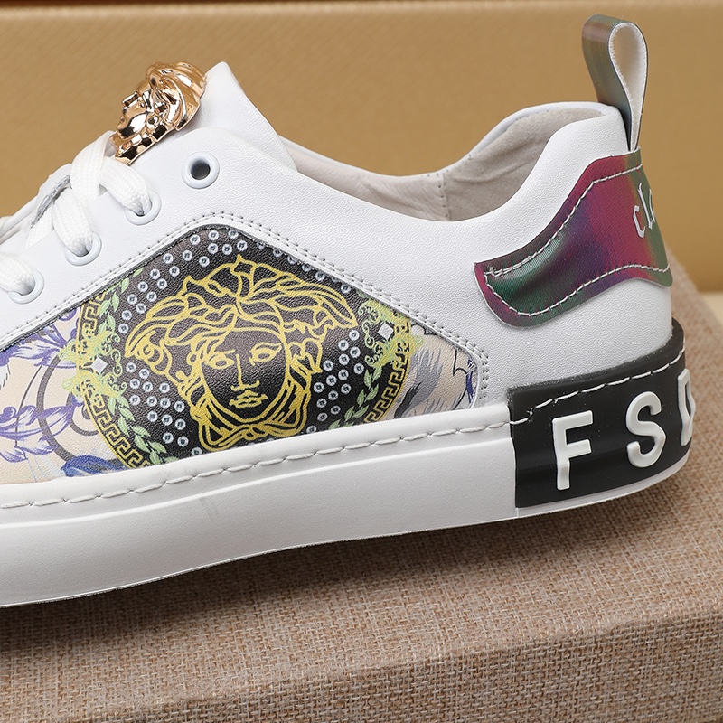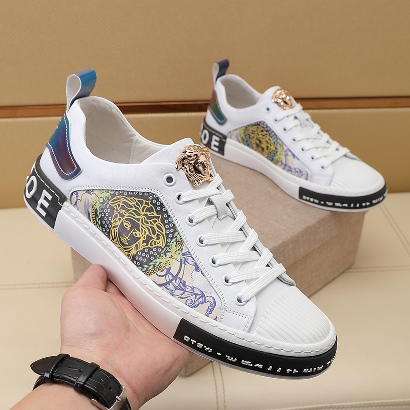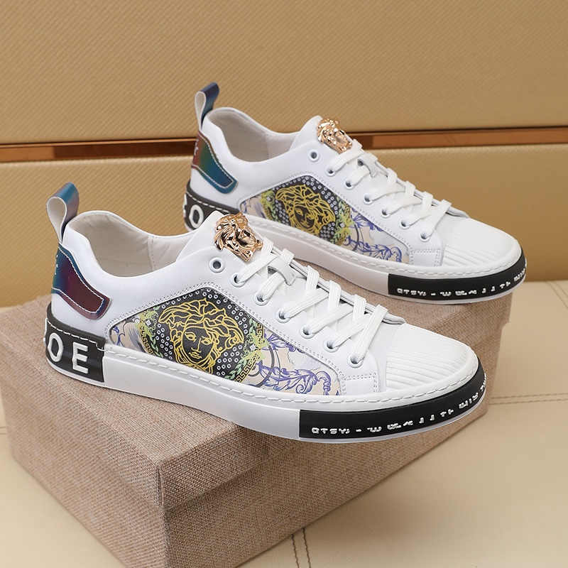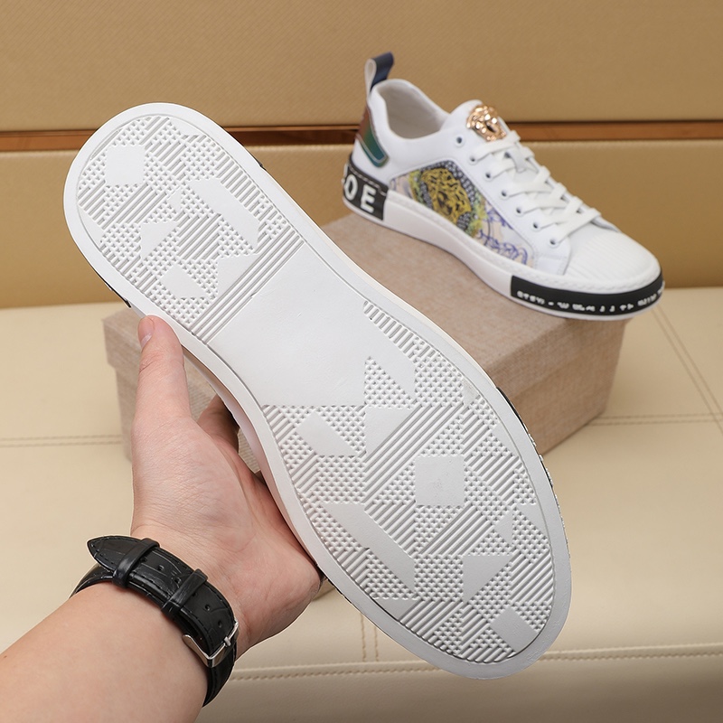 这款鞋子是AAAAA 1:1 质量 (非常棒). 使用了和原版一模一样的材料. 商标部分也保持了和范思哲/Versace一样. 图片拍摄是实物鞋子拍摄, 您所收到的实物保证和我们图片一模一样.