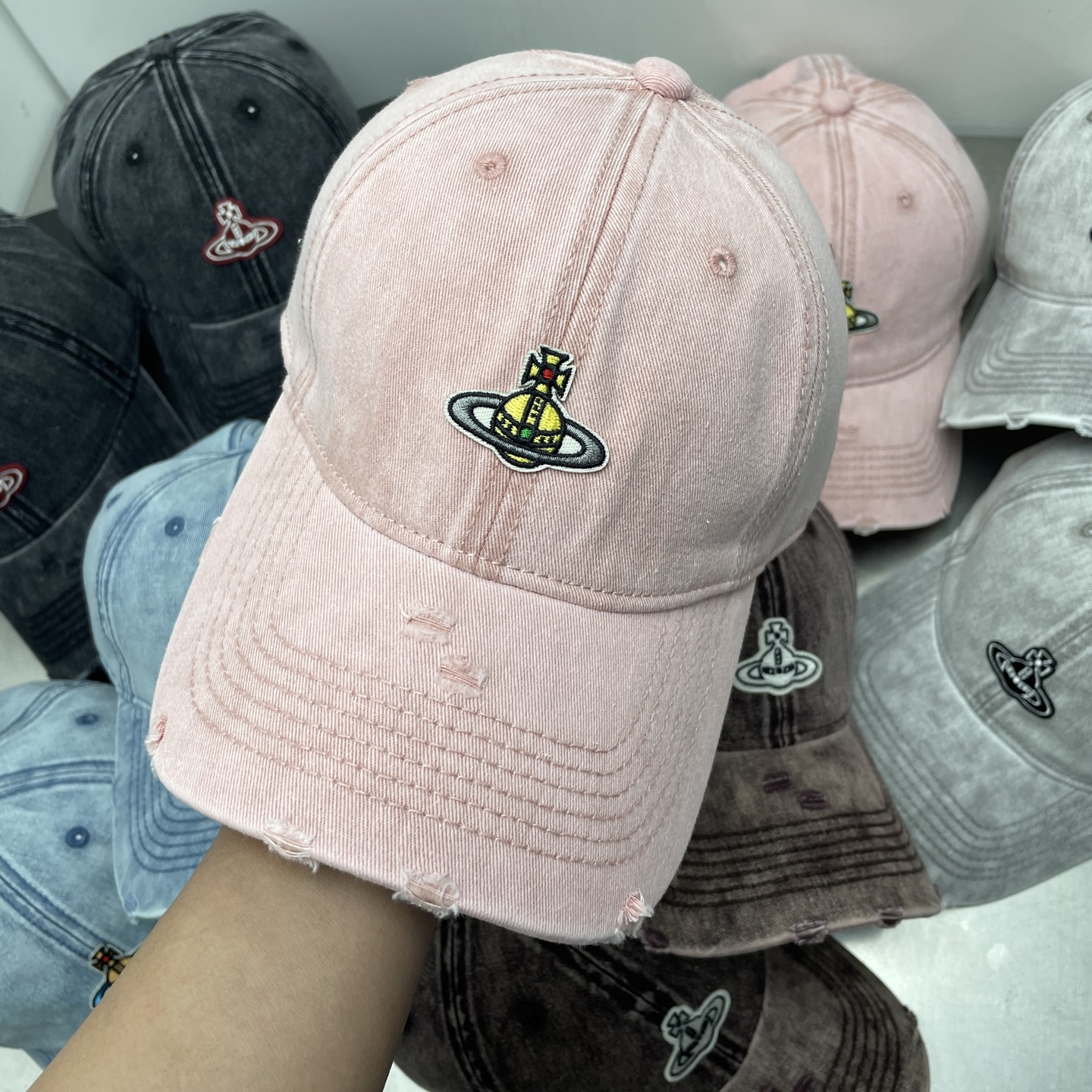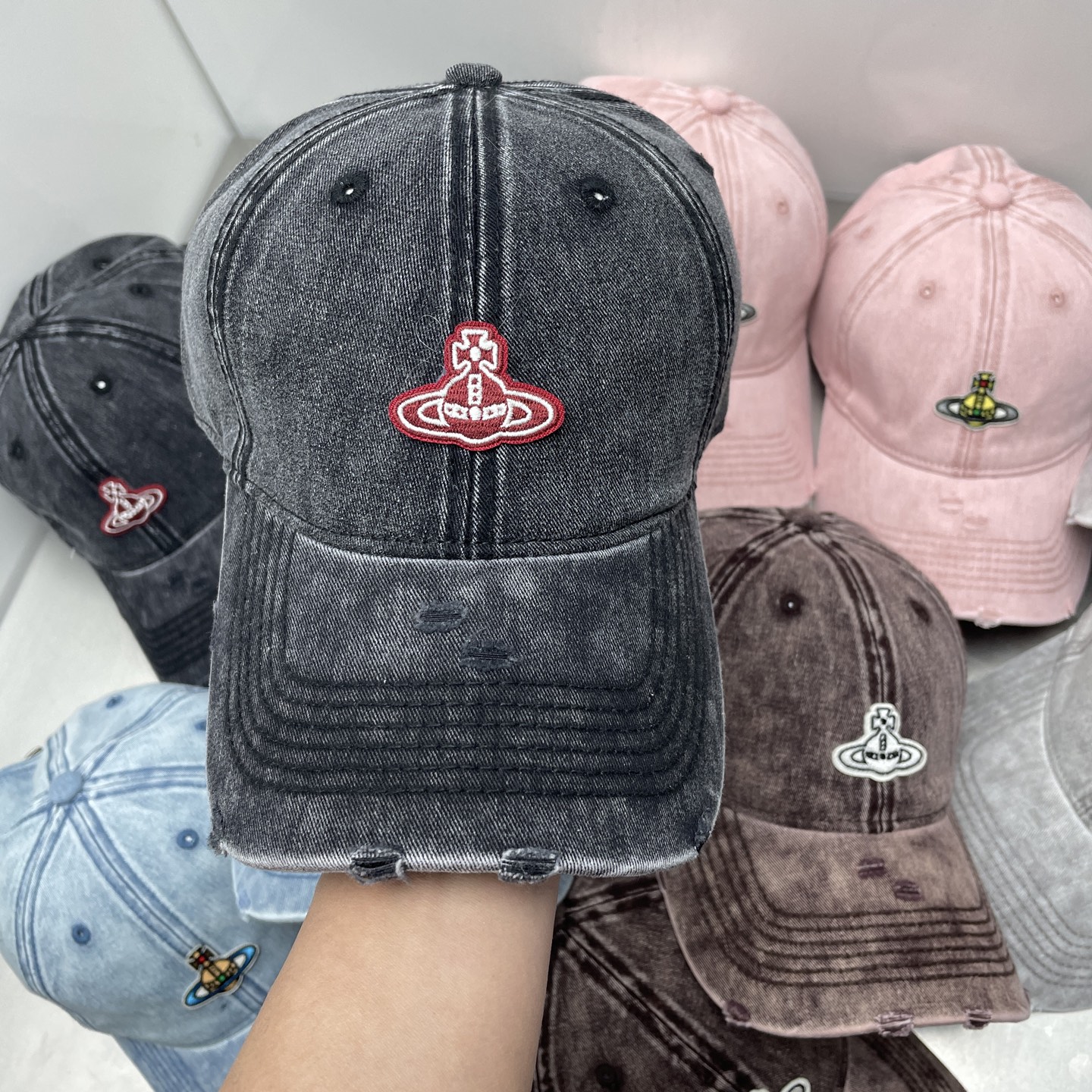 这款帽子是AAAAA 1:1 质量 (非常棒). 使用了和原版一模一样的材料. 商标部分也保持了和Vivienne Westwood一样. 图片拍摄是实物帽子拍摄, 您所收到的实物保证和我们图片一模一样.