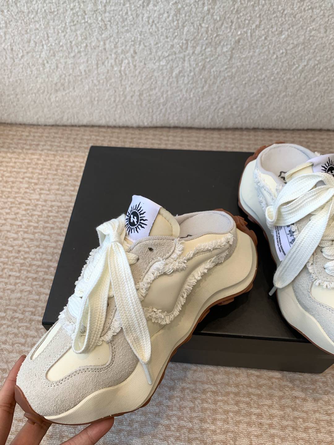 这款鞋子是AAAAA 1:1 质量 (非常棒). 使用了和原版一模一样的材料. 商标部分也保持了和一样. 图片拍摄是实物鞋子拍摄, 您所收到的实物保证和我们图片一模一样.