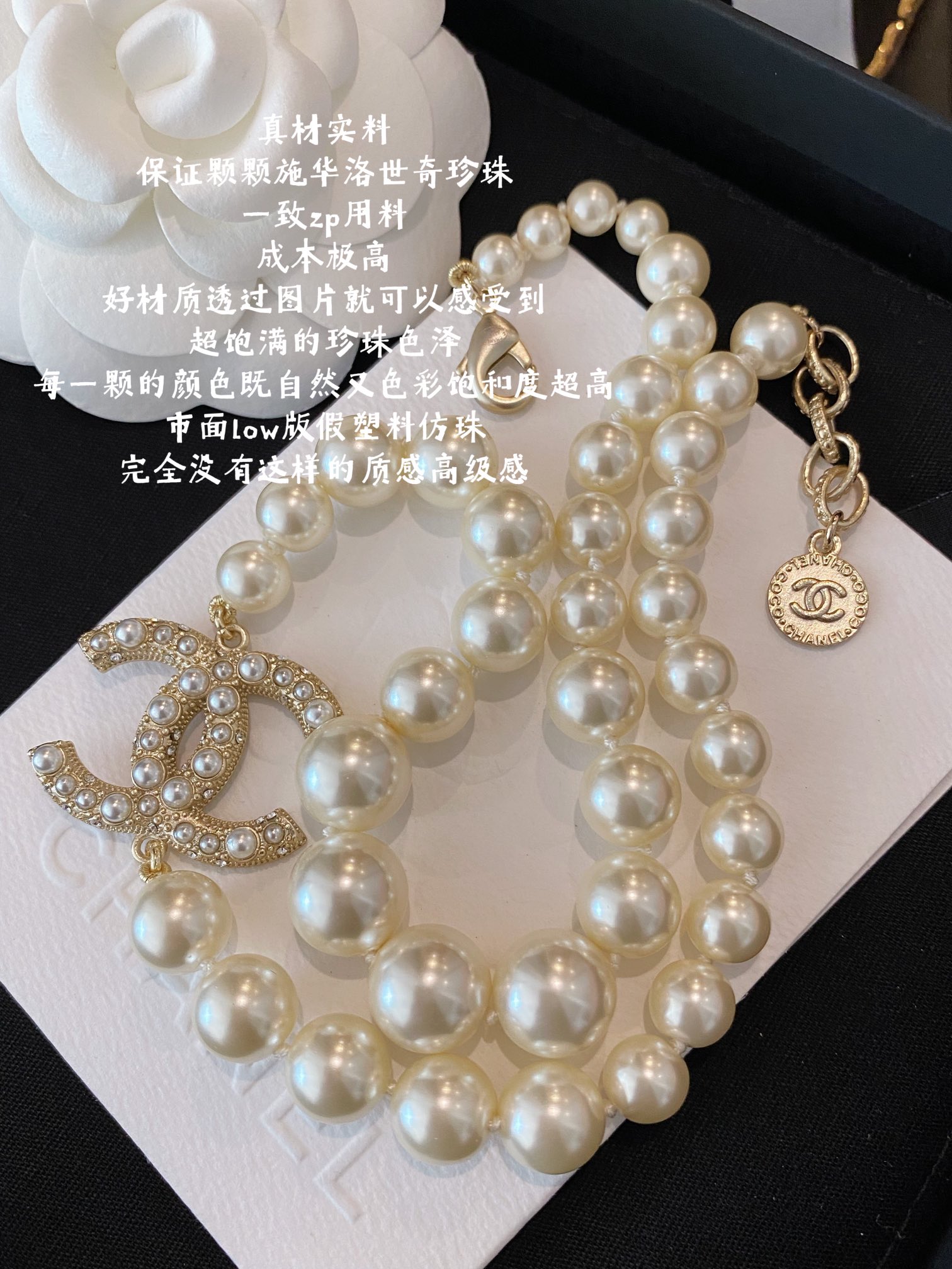 这款首饰是AAAAA 1:1 质量 (非常棒). 使用了和原版一模一样的材料. 商标部分也保持了和香奈儿/Chanel一样. 图片拍摄是实物首饰拍摄, 您所收到的实物保证和我们图片一模一样.
