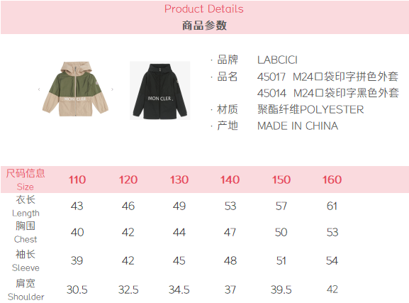 这款children's clothes是AAAAA 1:1 质量 (非常棒). 使用了和原版一模一样的材料. 商标部分也保持了和一样. 图片拍摄是实物children's clothes拍摄, 您所收到的实物保证和我们图片一模一样.