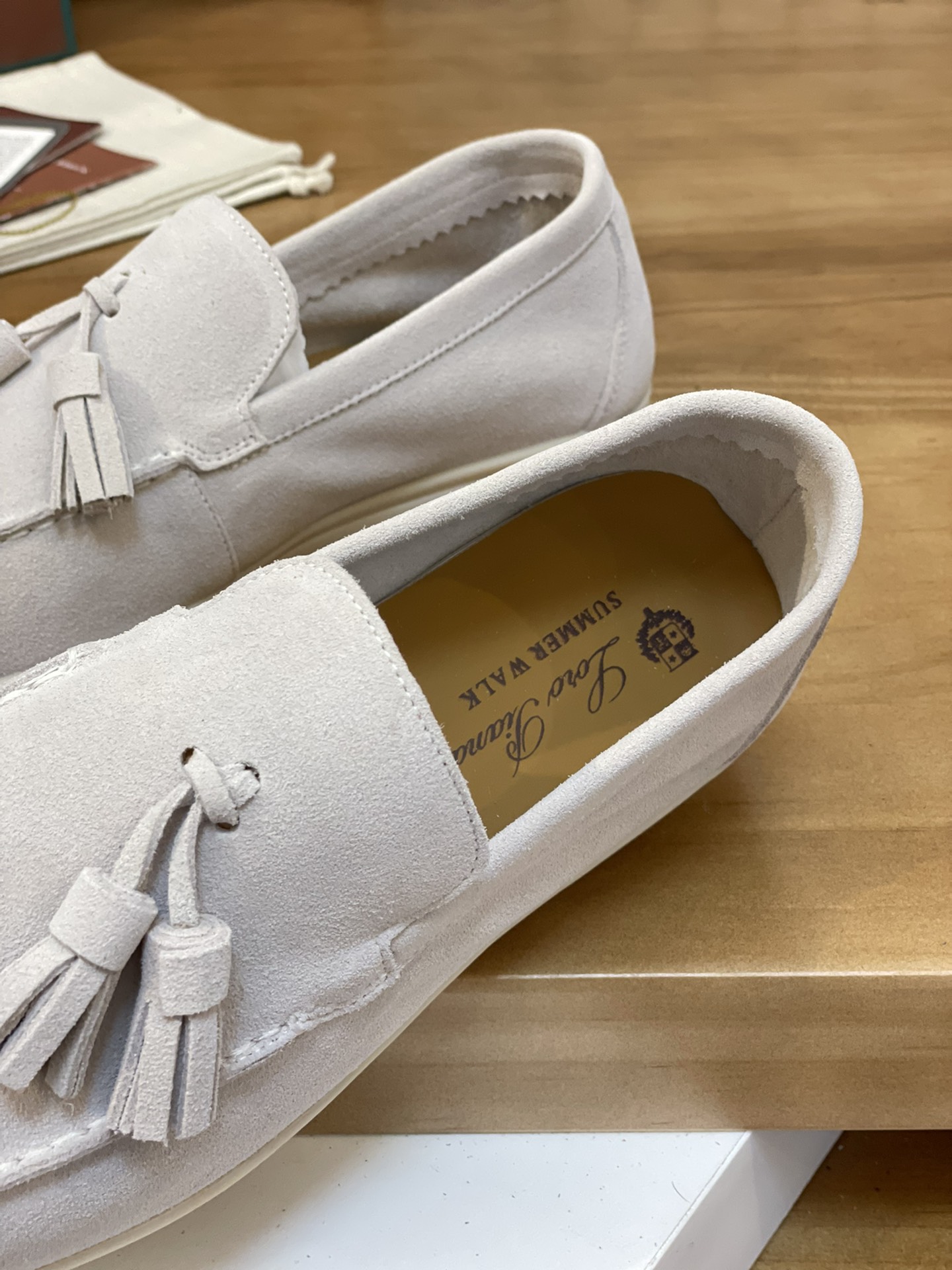 这款鞋子是AAAAA 1:1 质量 (非常棒). 使用了和原版一模一样的材料. 商标部分也保持了和洛罗皮亚纳/Loro Piana一样. 图片拍摄是实物鞋子拍摄, 您所收到的实物保证和我们图片一模一样.