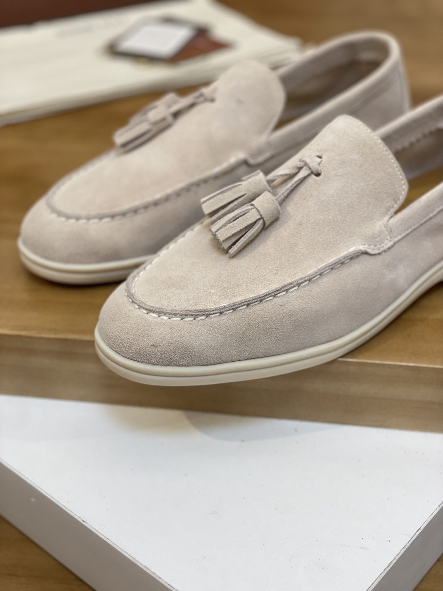 这款鞋子是AAAAA 1:1 质量 (非常棒). 使用了和原版一模一样的材料. 商标部分也保持了和洛罗皮亚纳/Loro Piana一样. 图片拍摄是实物鞋子拍摄, 您所收到的实物保证和我们图片一模一样.