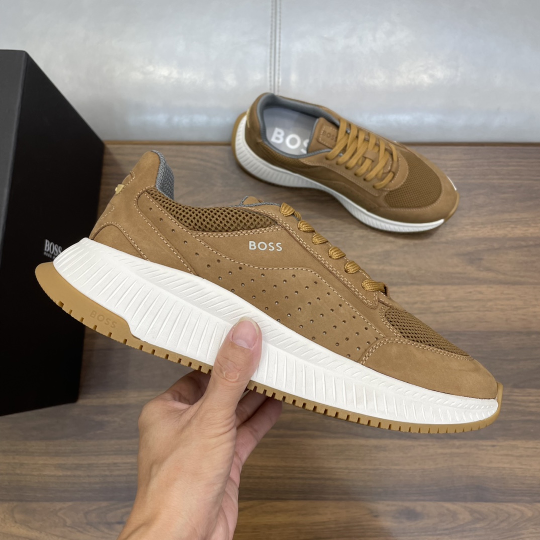 这款鞋子是AAAAA 1:1 质量 (非常棒). 使用了和原版一模一样的材料. 商标部分也保持了和BOSS一样. 图片拍摄是实物鞋子拍摄, 您所收到的实物保证和我们图片一模一样.