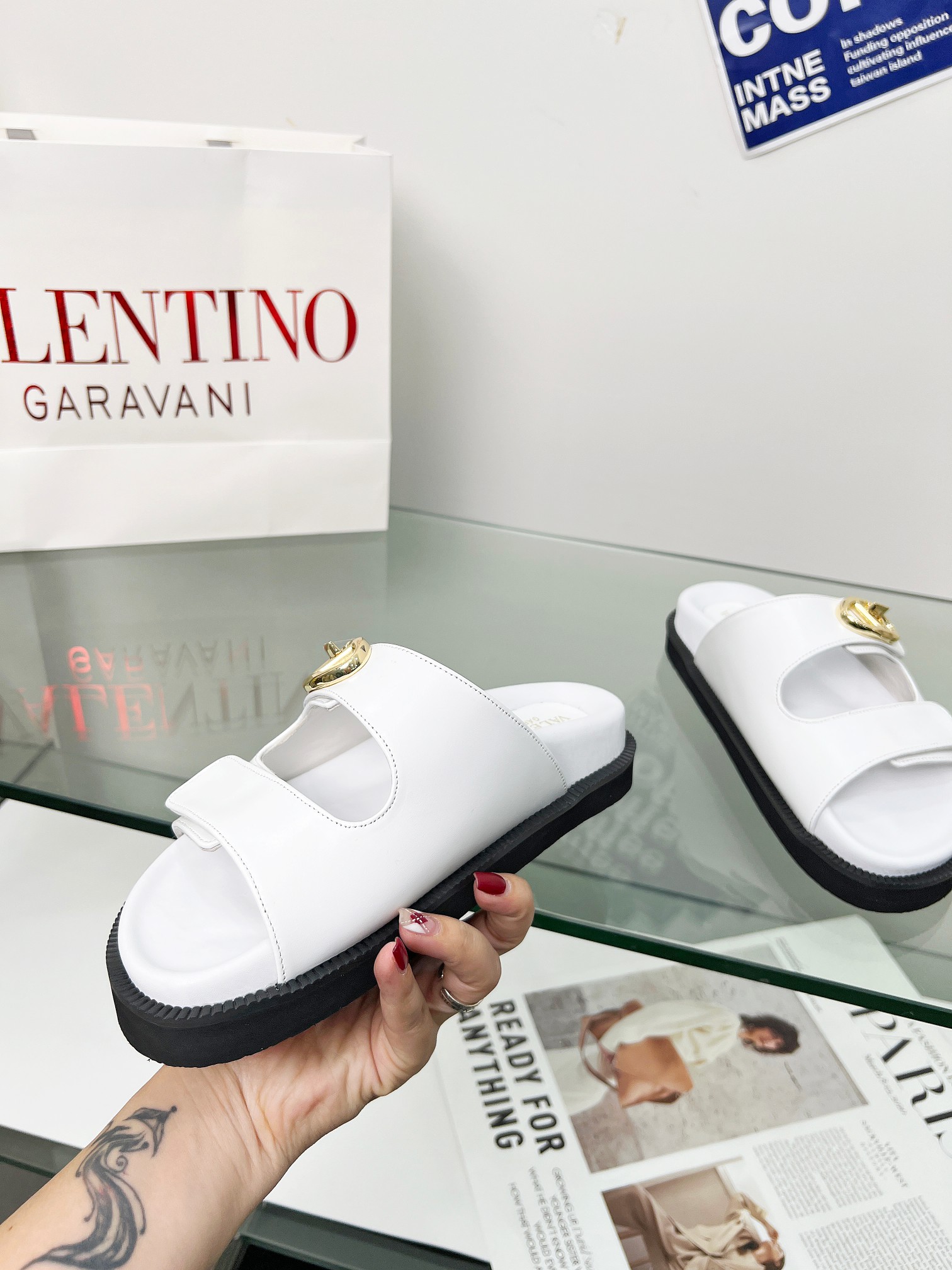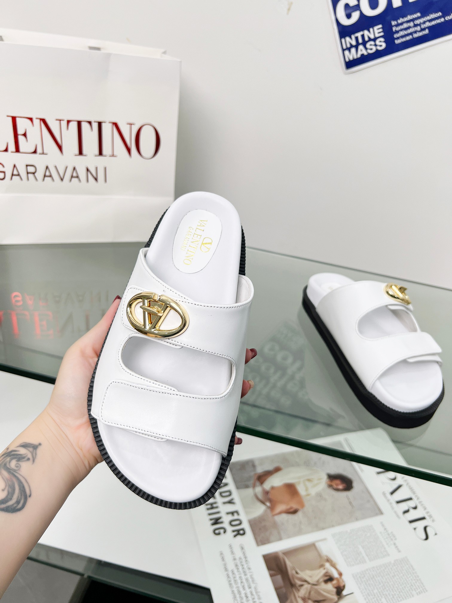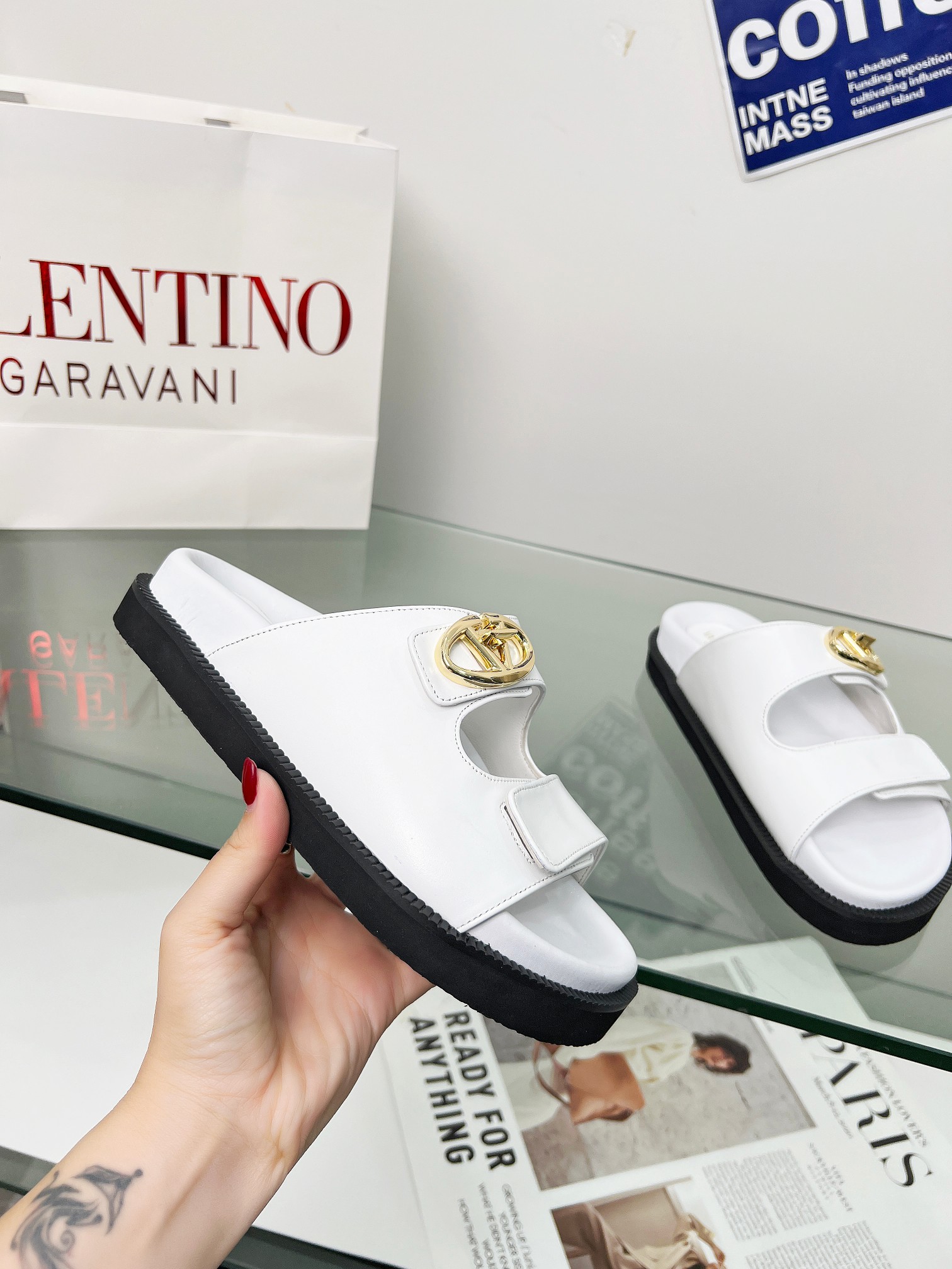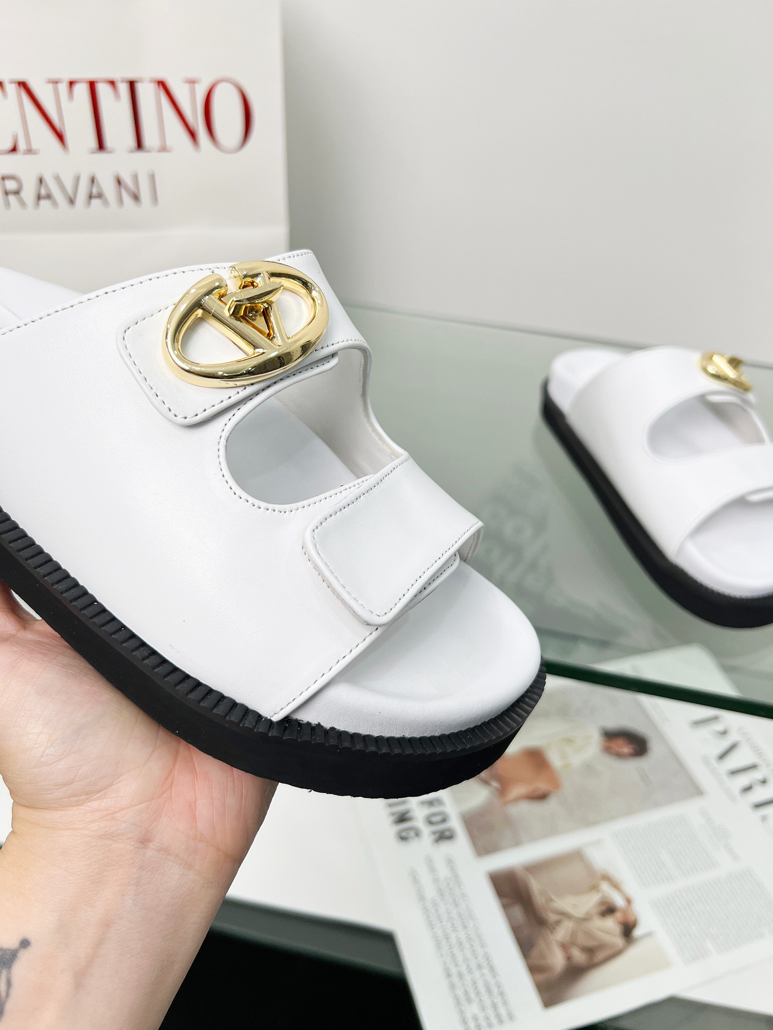 这款鞋子是AAAAA 1:1 质量 (非常棒). 使用了和原版一模一样的材料. 商标部分也保持了和华伦天奴/Valentino一样. 图片拍摄是实物鞋子拍摄, 您所收到的实物保证和我们图片一模一样.