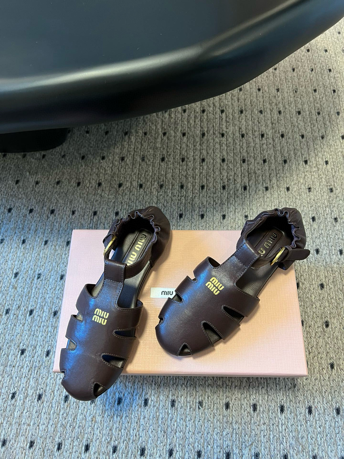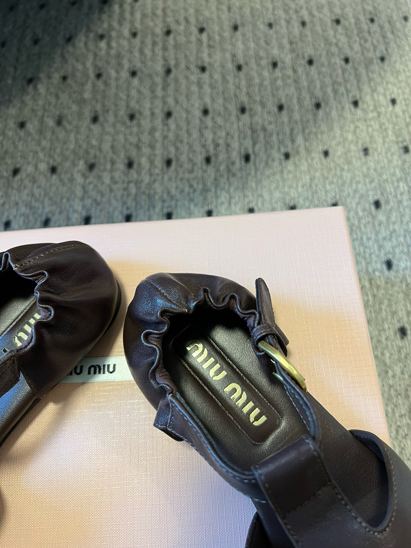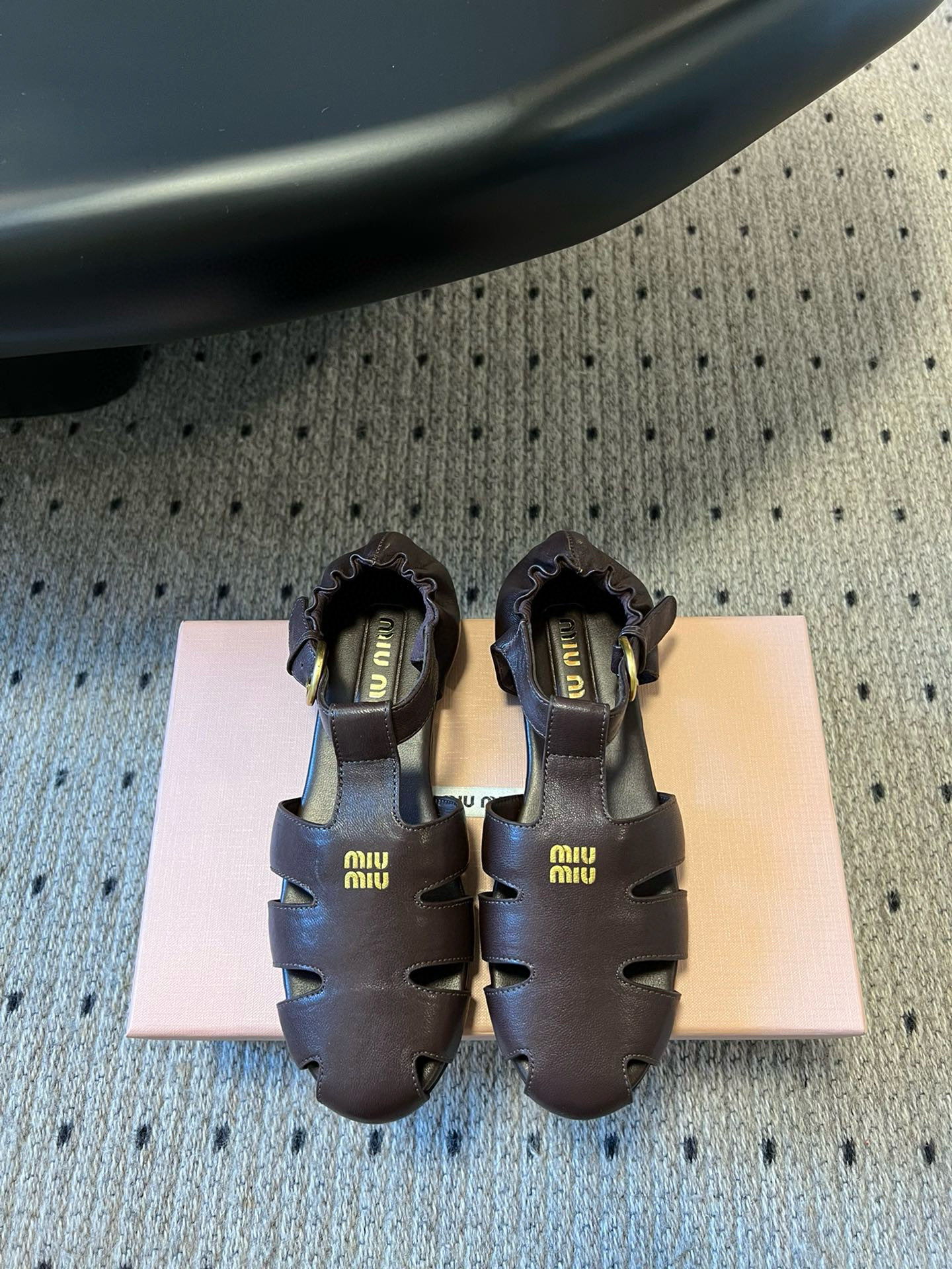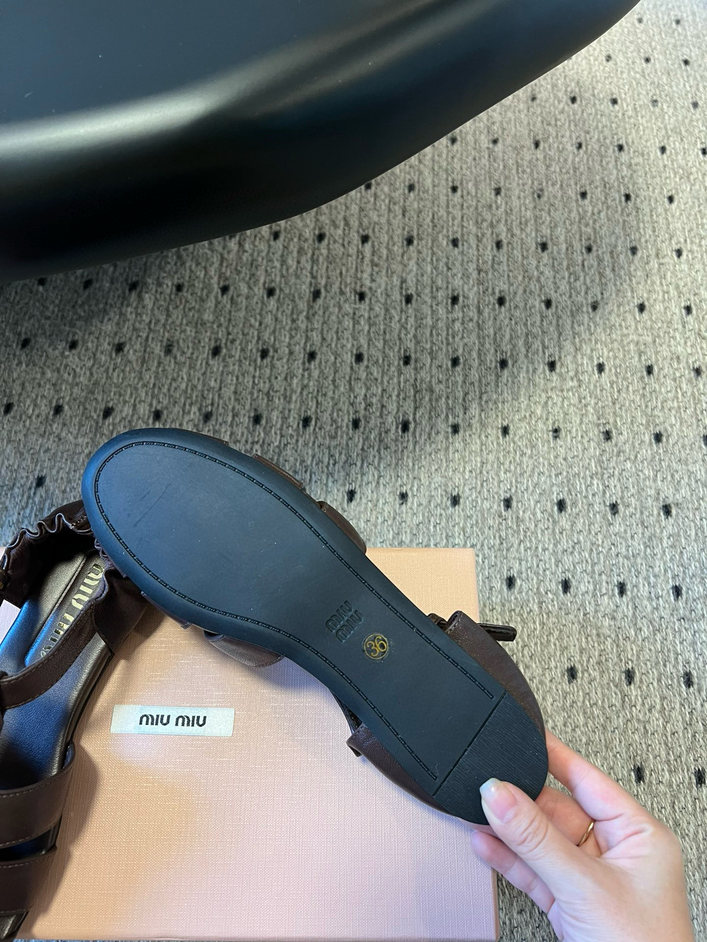 这款鞋子是AAAAA 1:1 质量 (非常棒). 使用了和原版一模一样的材料. 商标部分也保持了和缪缪/Miu Miu一样. 图片拍摄是实物鞋子拍摄, 您所收到的实物保证和我们图片一模一样.