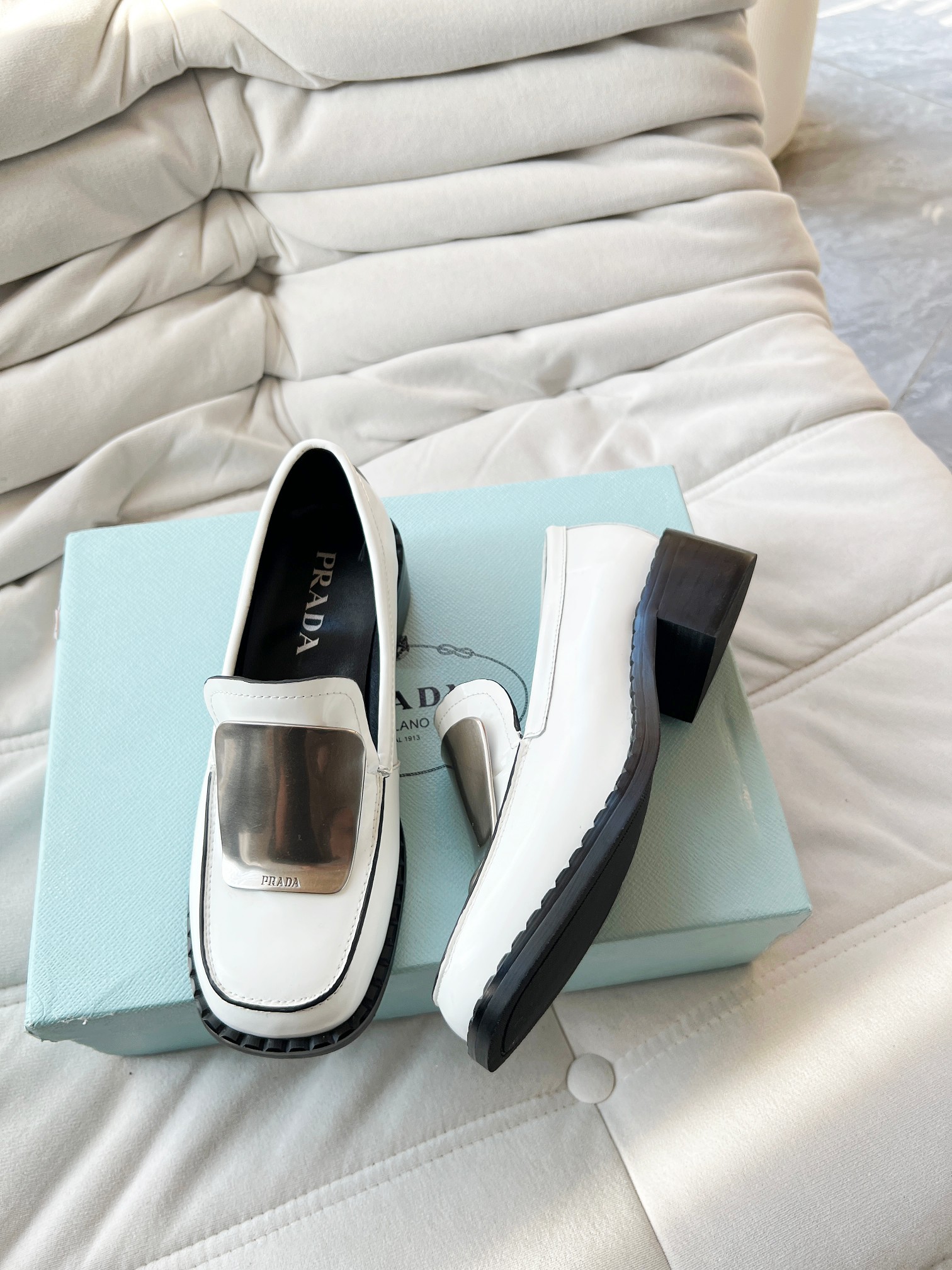 这款鞋子是AAAAA 1:1 质量 (非常棒). 使用了和原版一模一样的材料. 商标部分也保持了和普拉达/Prada一样. 图片拍摄是实物鞋子拍摄, 您所收到的实物保证和我们图片一模一样.