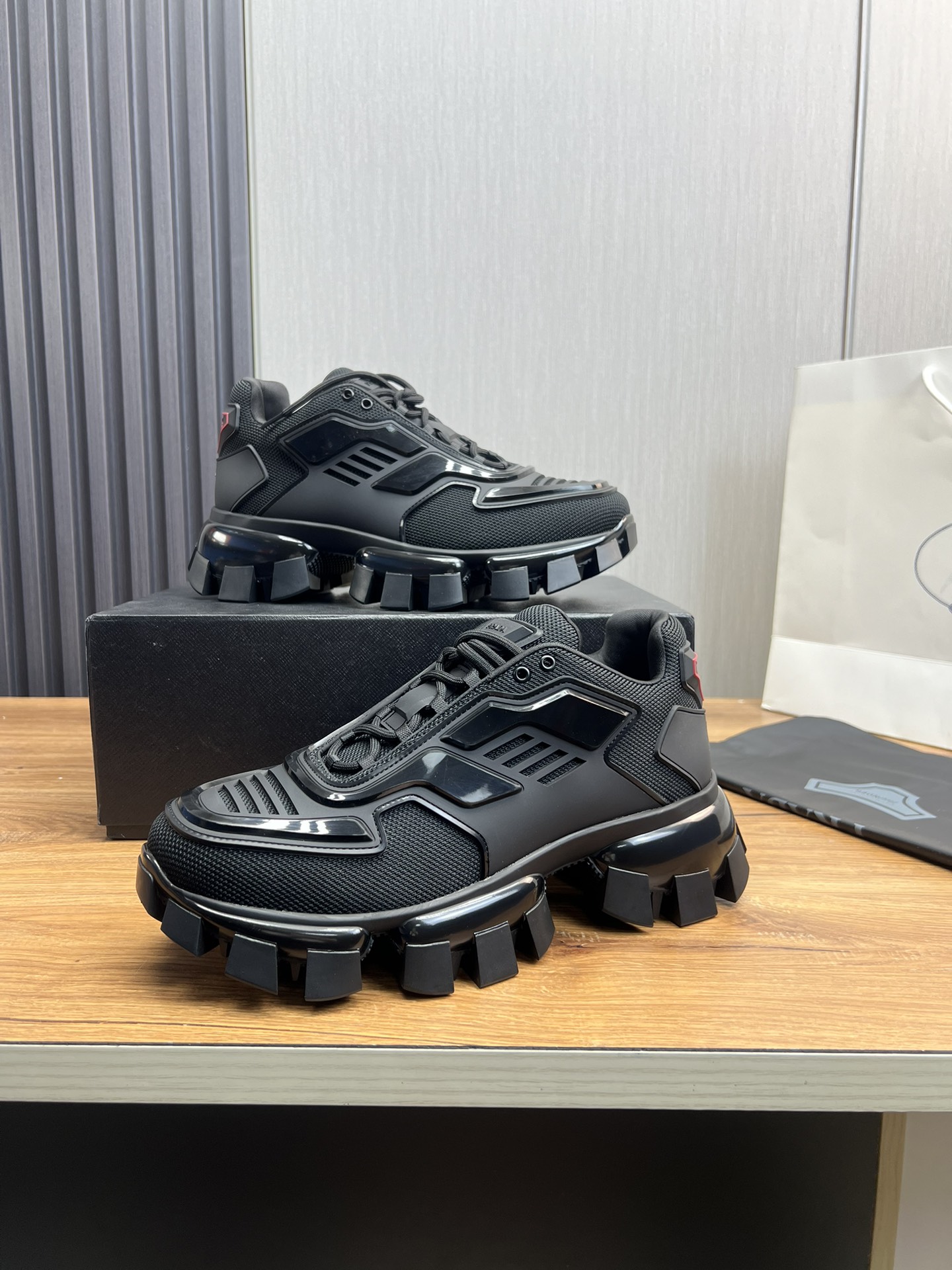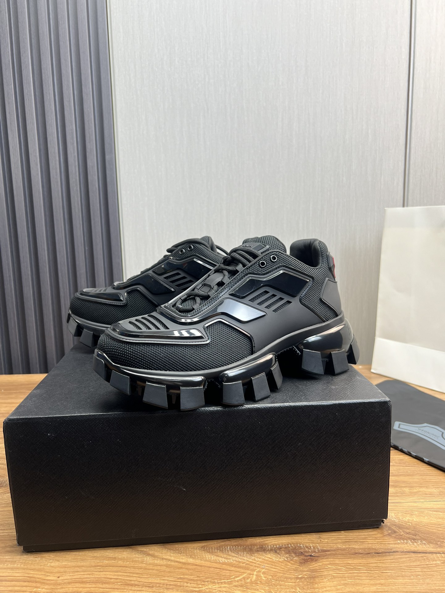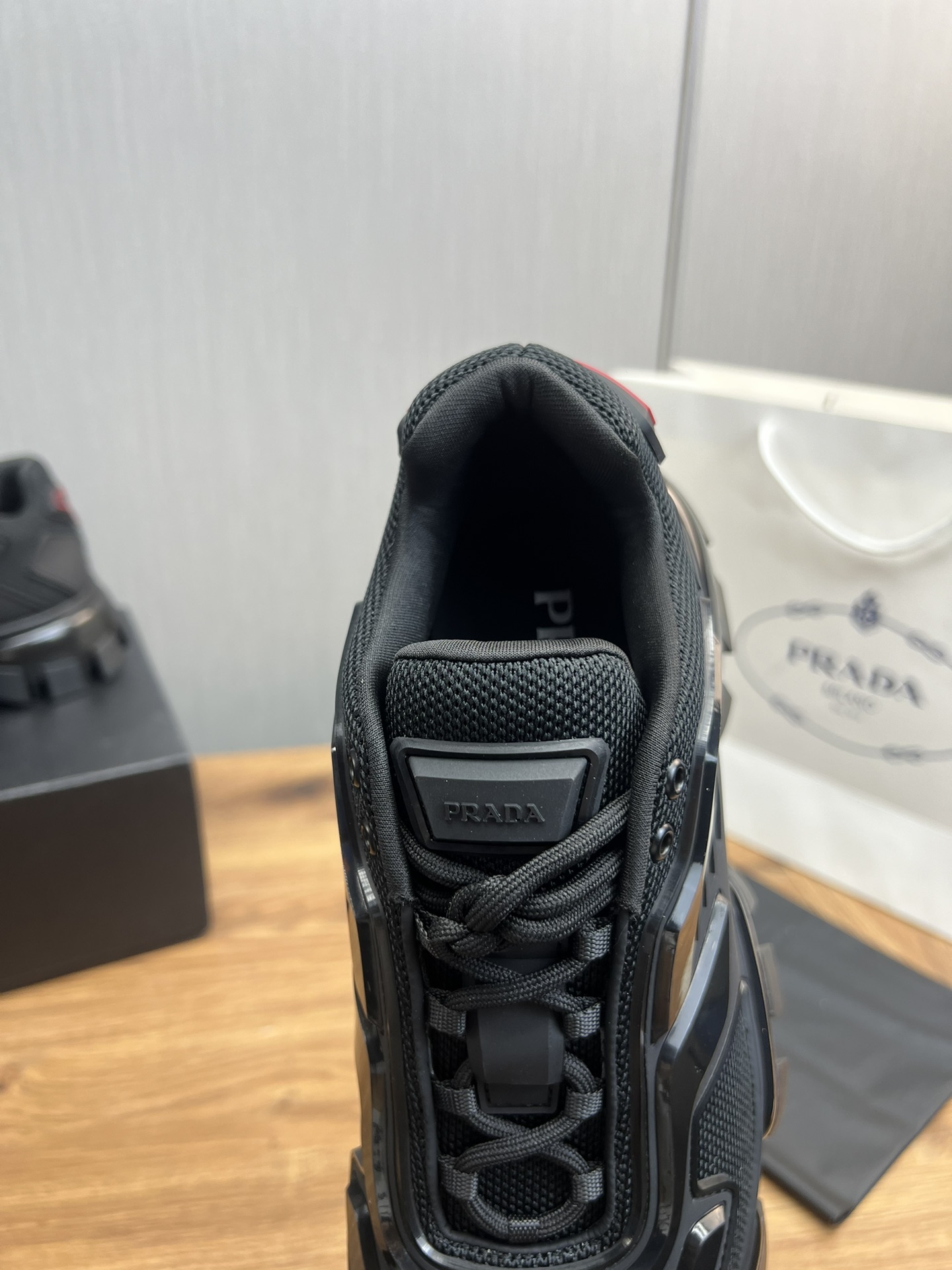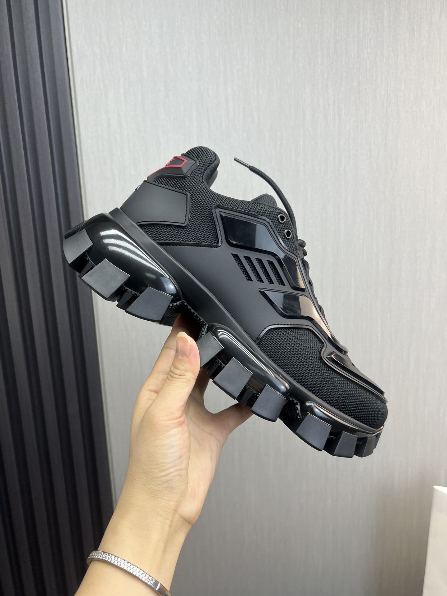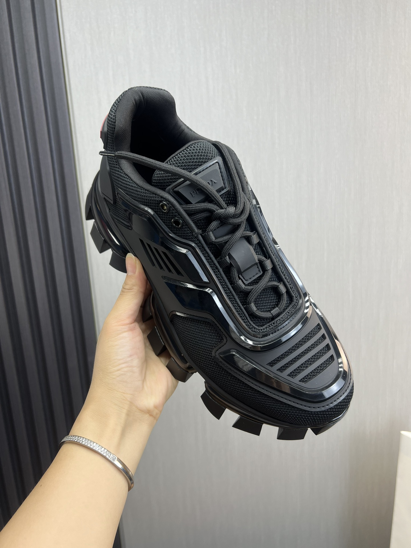 这款鞋子是AAAAA 1:1 质量 (非常棒). 使用了和原版一模一样的材料. 商标部分也保持了和普拉达/Prada一样. 图片拍摄是实物鞋子拍摄, 您所收到的实物保证和我们图片一模一样.