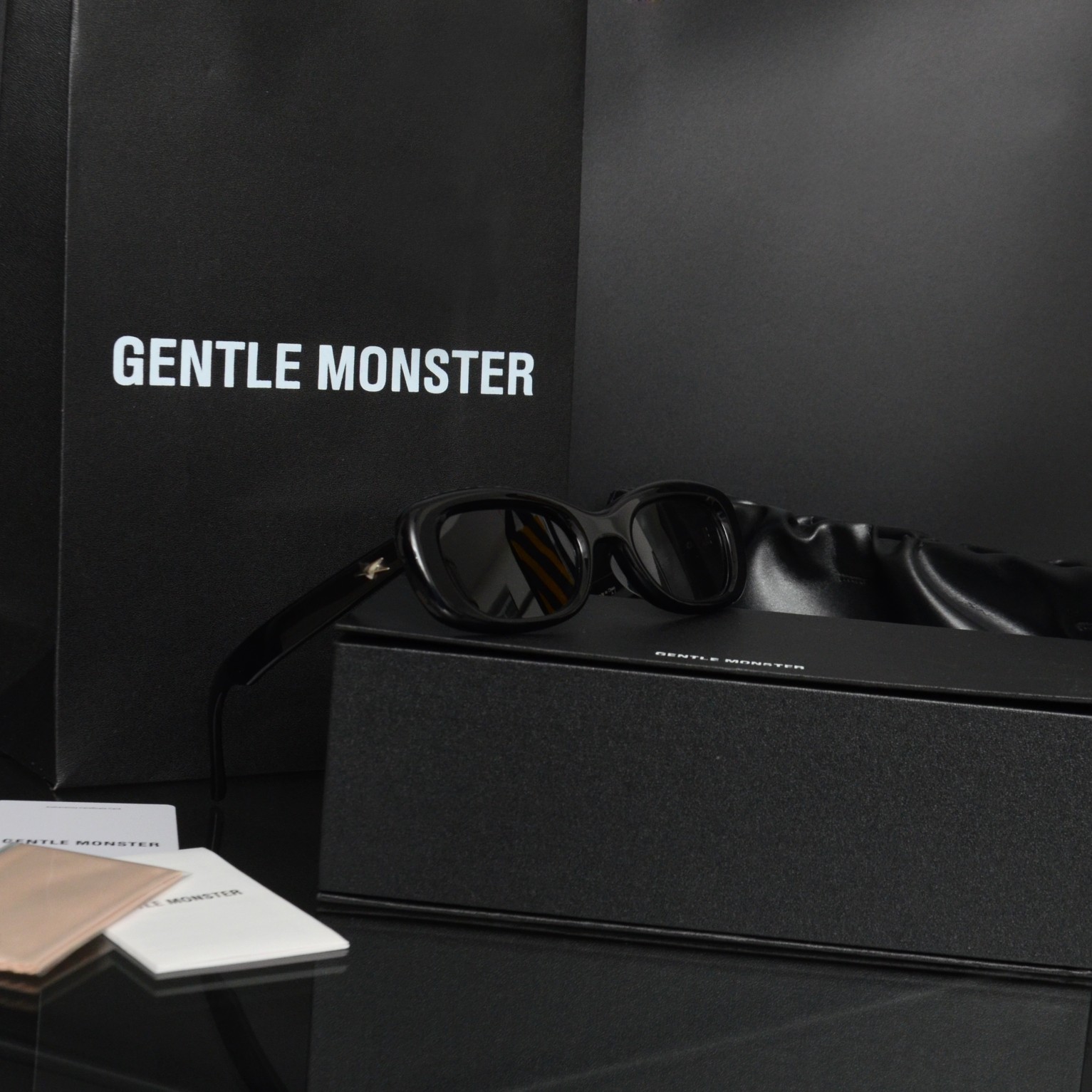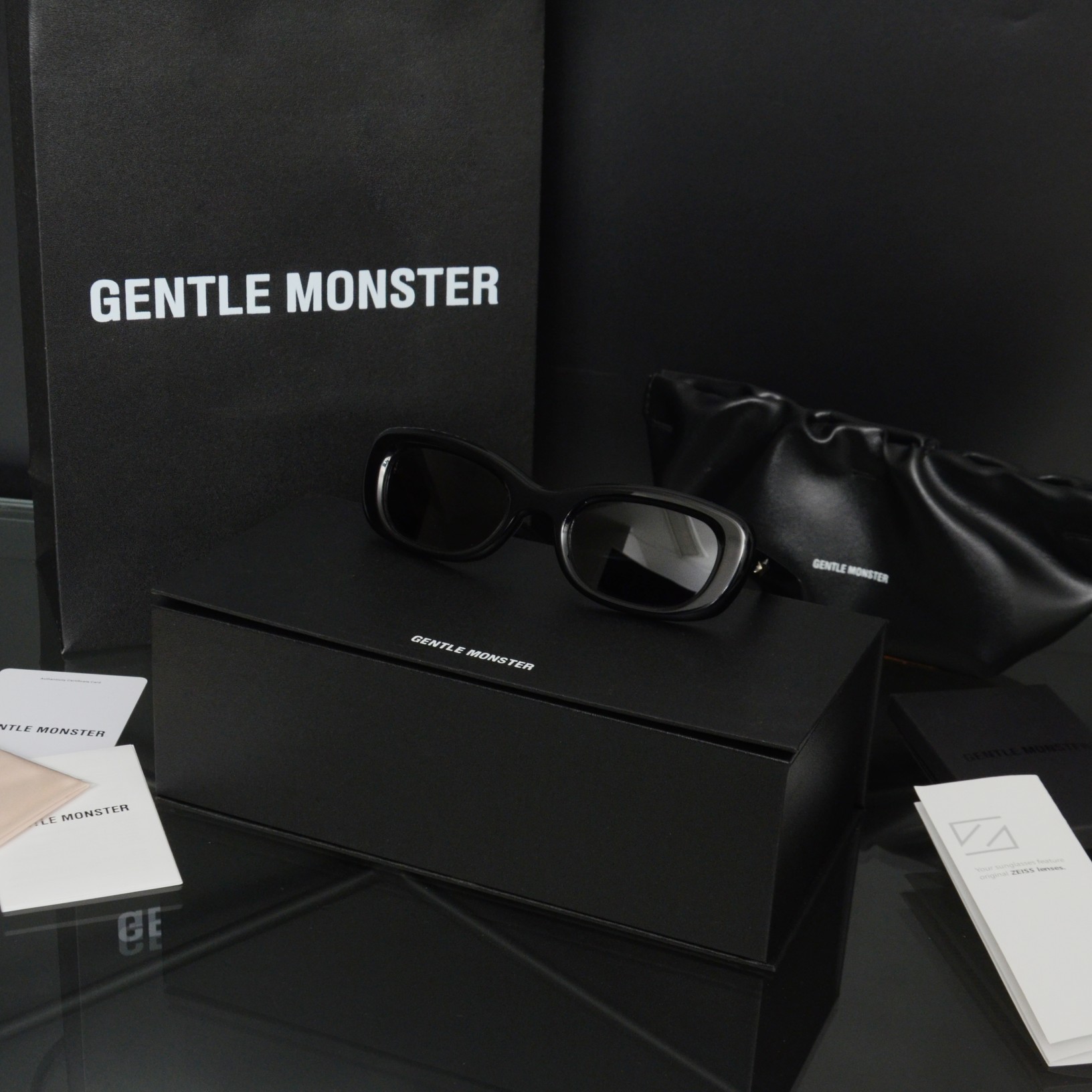 这款太阳眼镜是AAAAA 1:1 质量 (非常棒). 使用了和原版一模一样的材料. 商标部分也保持了和Gentle Monster一样. 图片拍摄是实物太阳眼镜拍摄, 您所收到的实物保证和我们图片一模一样.