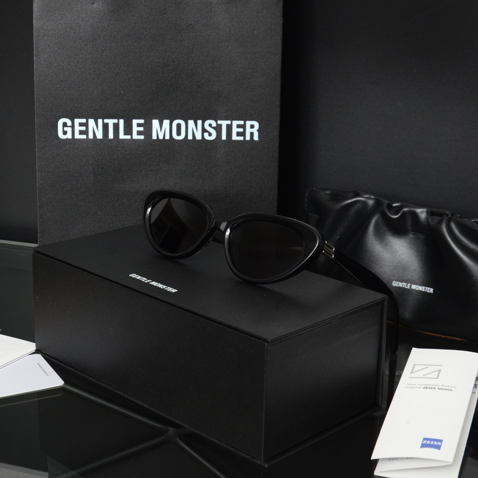这款太阳眼镜是AAAAA 1:1 质量 (非常棒). 使用了和原版一模一样的材料. 商标部分也保持了和Gentle Monster一样. 图片拍摄是实物太阳眼镜拍摄, 您所收到的实物保证和我们图片一模一样.