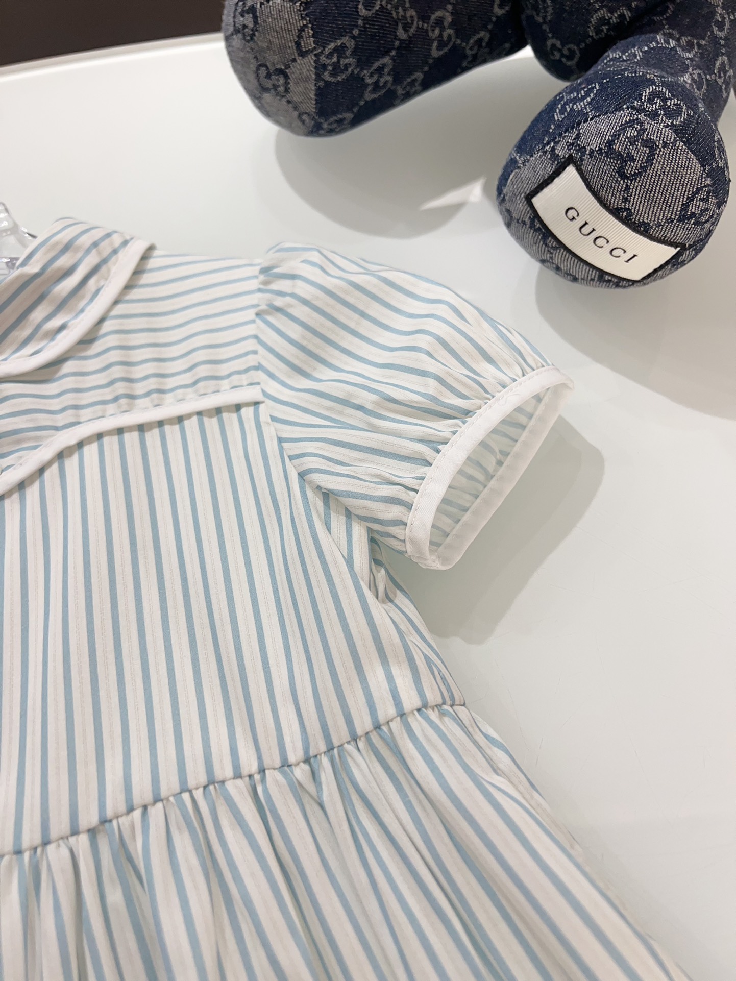 这款children's clothes是AAAAA 1:1 质量 (非常棒). 使用了和原版一模一样的材料. 商标部分也保持了和古奇/Gucci一样. 图片拍摄是实物children's clothes拍摄, 您所收到的实物保证和我们图片一模一样.