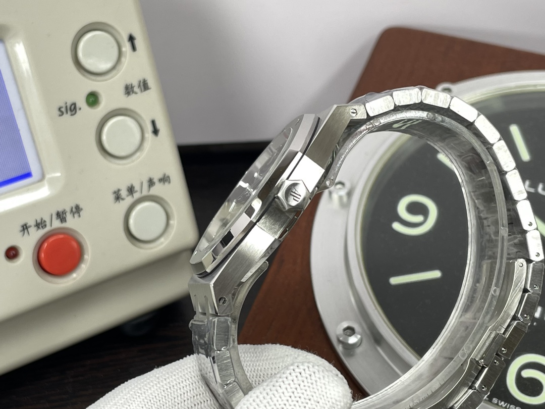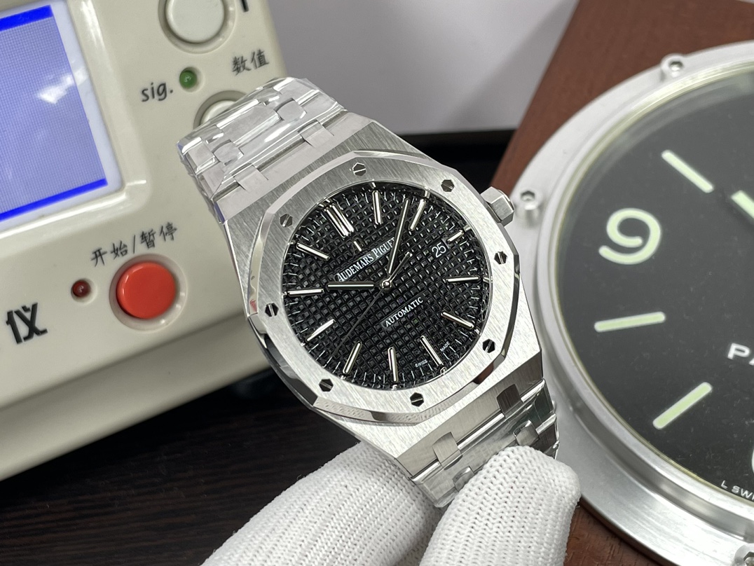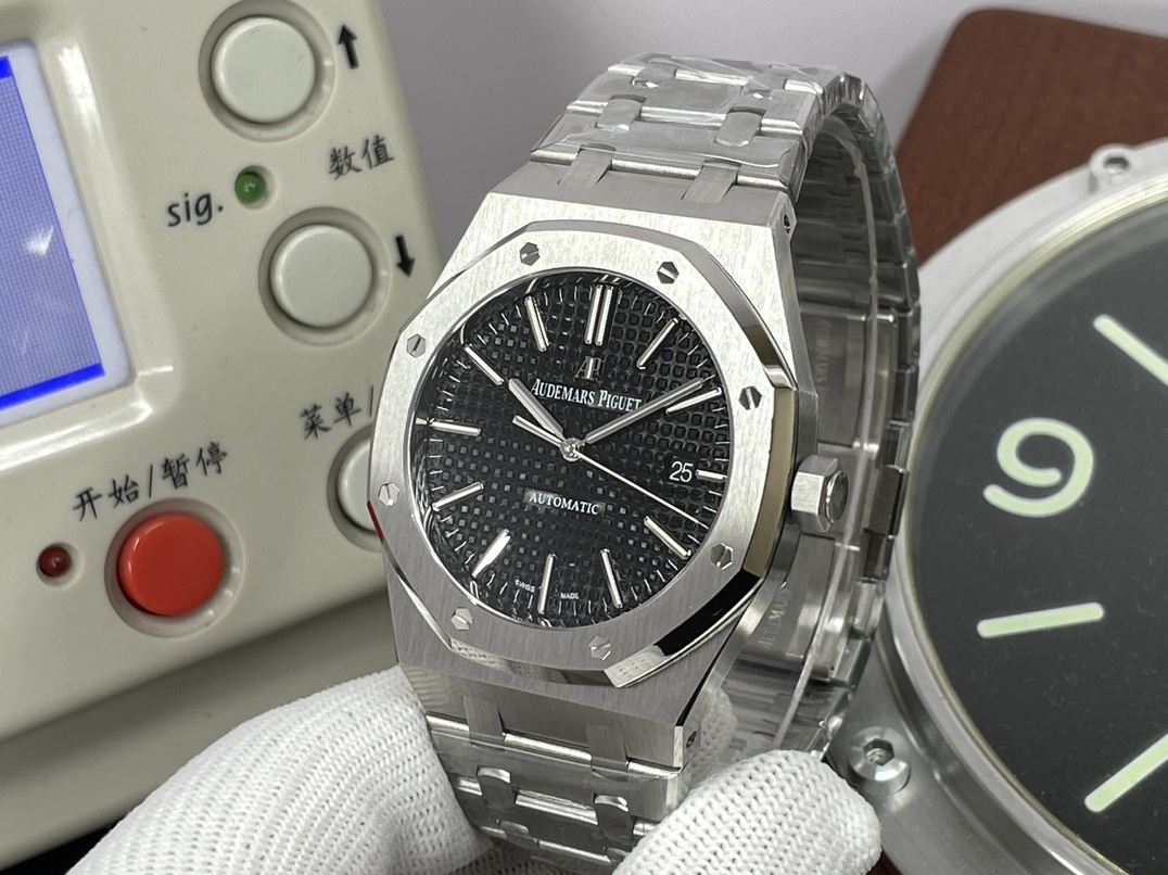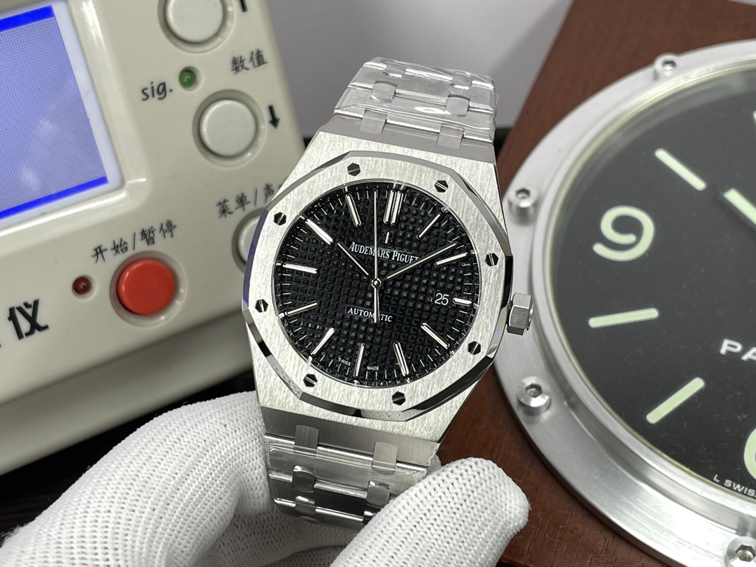 这款手表是AAAAA 1:1 质量 (非常棒). 使用了和原版一模一样的材料. 商标部分也保持了和爱彼/Audemars Piguet一样. 图片拍摄是实物手表拍摄, 您所收到的实物保证和我们图片一模一样.