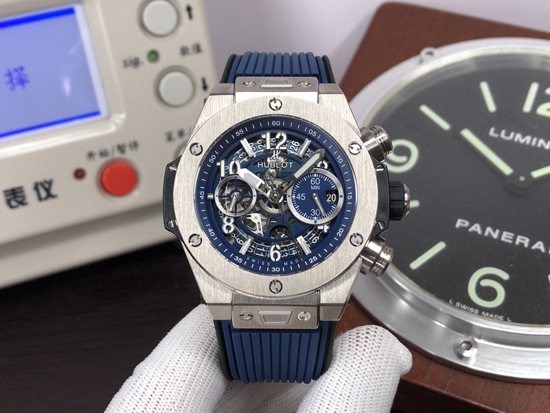 这款手表是AAAAA 1:1 质量 (非常棒). 使用了和原版一模一样的材料. 商标部分也保持了和Hublot一样. 图片拍摄是实物手表拍摄, 您所收到的实物保证和我们图片一模一样.
