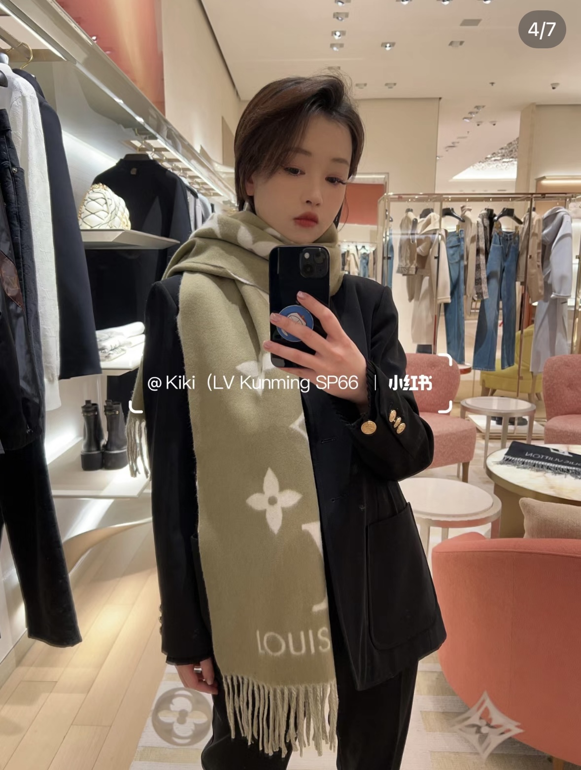 这款围巾是AAAAA 1:1 质量 (非常棒). 使用了和原版一模一样的材料. 商标部分也保持了和路易威登/Louis Vuitton一样. 图片拍摄是实物围巾拍摄, 您所收到的实物保证和我们图片一模一样.
