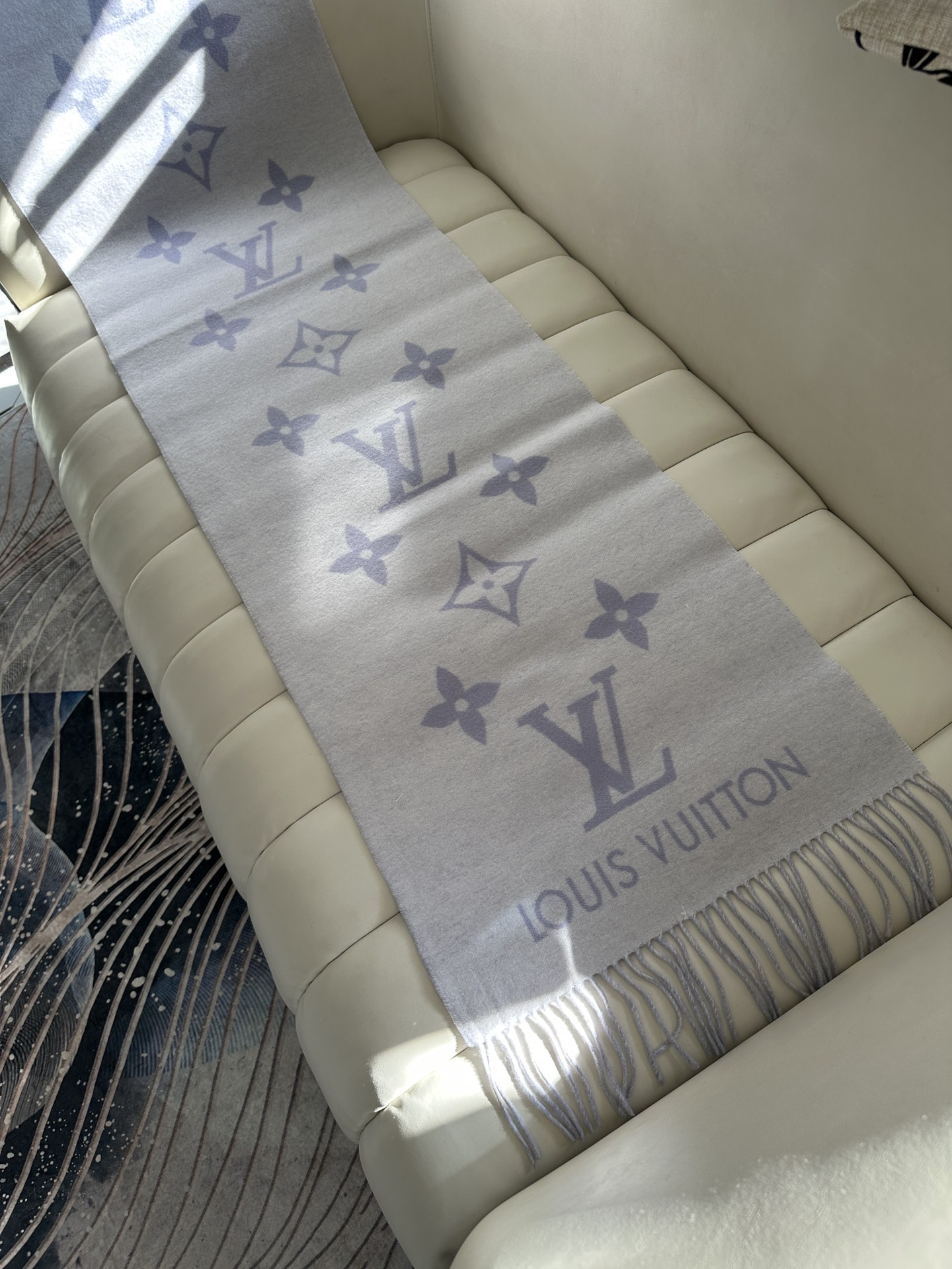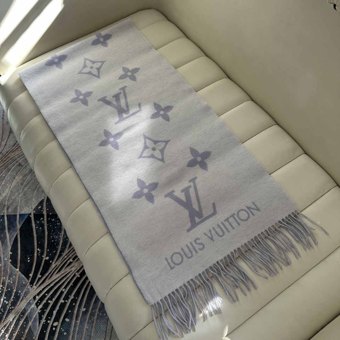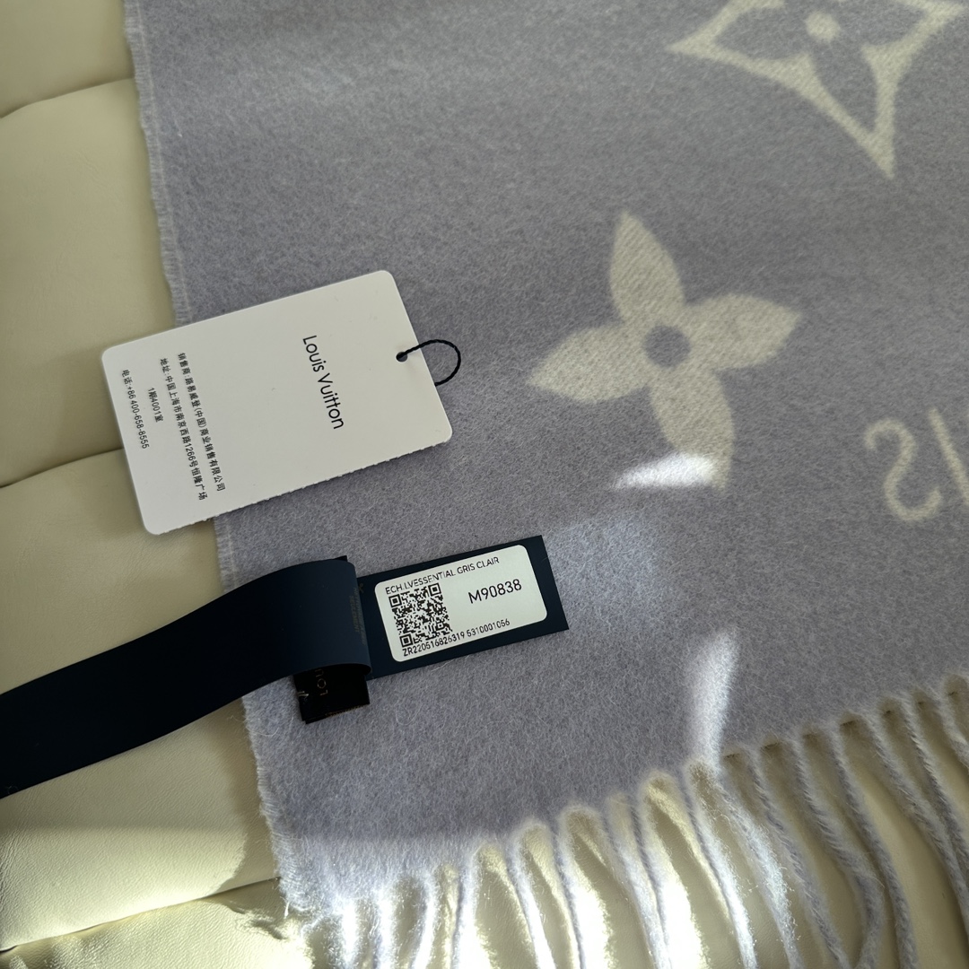 这款围巾是AAAAA 1:1 质量 (非常棒). 使用了和原版一模一样的材料. 商标部分也保持了和路易威登/Louis Vuitton一样. 图片拍摄是实物围巾拍摄, 您所收到的实物保证和我们图片一模一样.