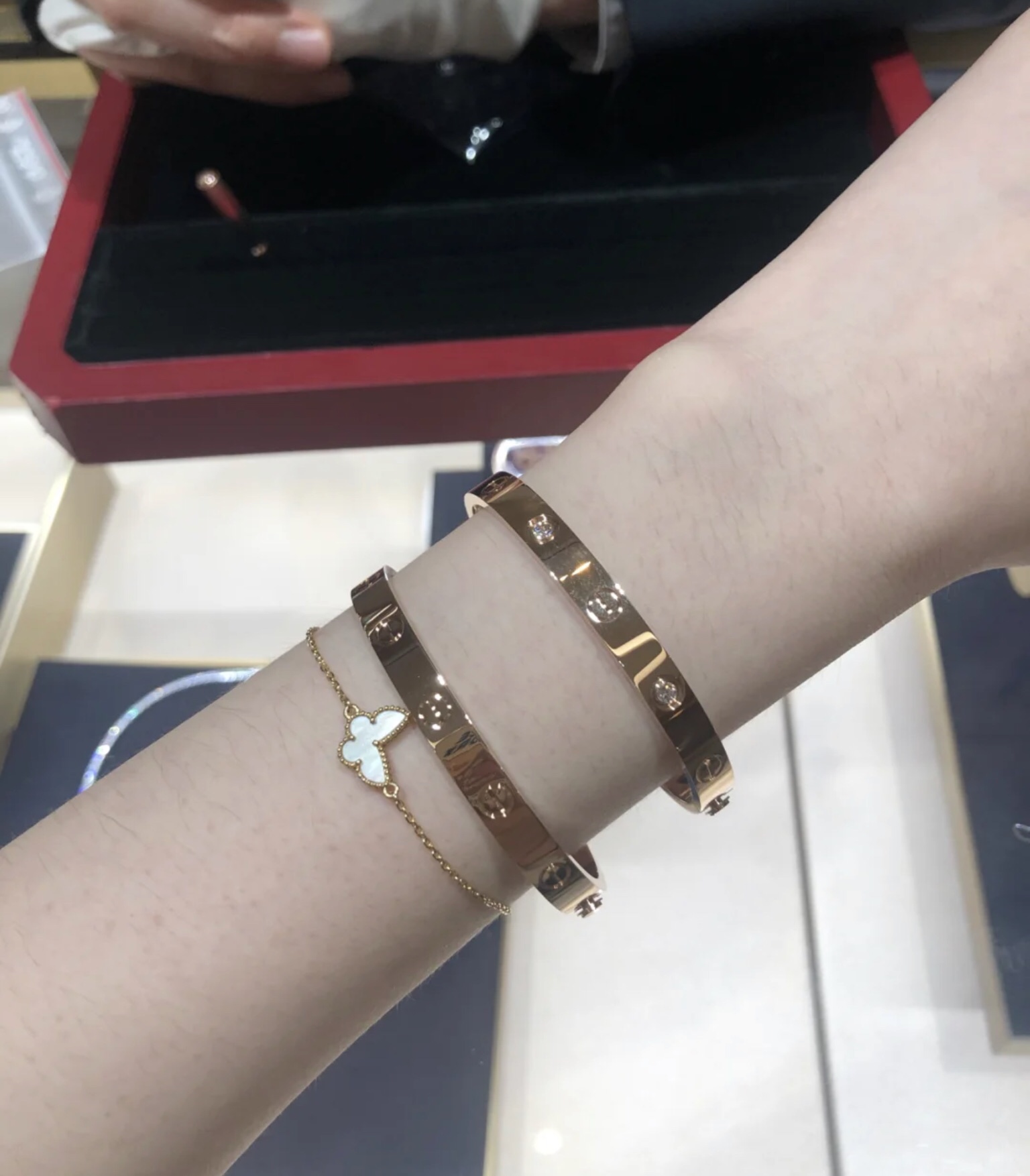 这款首饰是AAAAA 1:1 质量 (非常棒). 使用了和原版一模一样的材料. 商标部分也保持了和一样. 图片拍摄是实物首饰拍摄, 您所收到的实物保证和我们图片一模一样.