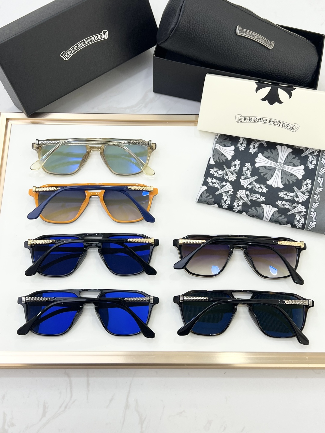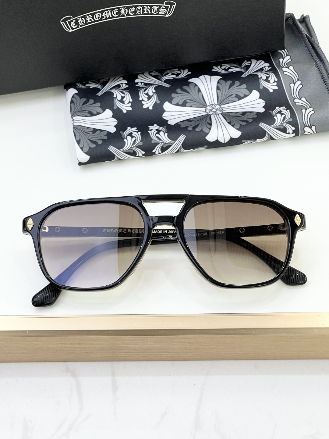 这款太阳眼镜是AAAAA 1:1 质量 (非常棒). 使用了和原版一模一样的材料. 商标部分也保持了和克罗心/Chrome Hearts一样. 图片拍摄是实物太阳眼镜拍摄, 您所收到的实物保证和我们图片一模一样.