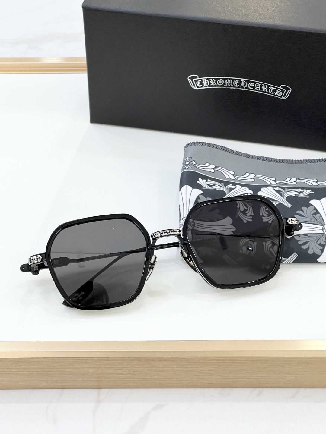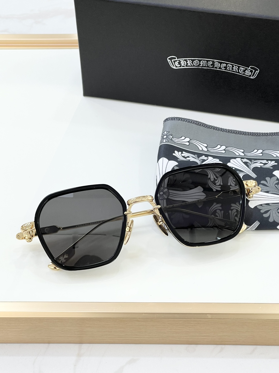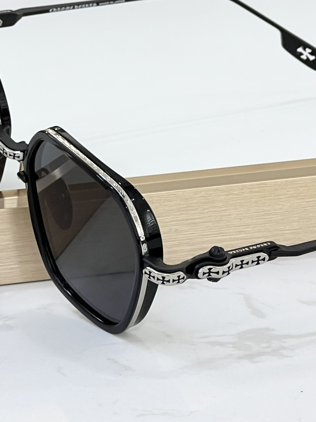 这款太阳眼镜是AAAAA 1:1 质量 (非常棒). 使用了和原版一模一样的材料. 商标部分也保持了和克罗心/Chrome Hearts一样. 图片拍摄是实物太阳眼镜拍摄, 您所收到的实物保证和我们图片一模一样.
