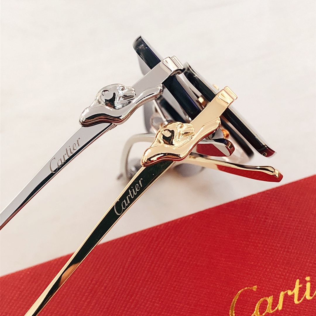 这款太阳眼镜是AAAAA 1:1 质量 (非常棒). 使用了和原版一模一样的材料. 商标部分也保持了和卡地亚/Cartier一样. 图片拍摄是实物太阳眼镜拍摄, 您所收到的实物保证和我们图片一模一样.