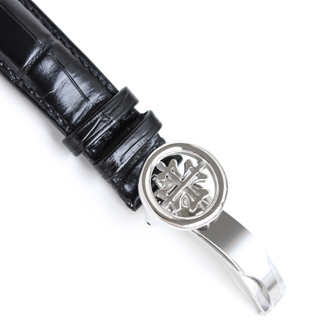 这款手表是AAAAA 1:1 质量 (非常棒). 使用了和原版一模一样的材料. 商标部分也保持了和百达翡丽/Patek Philippe一样. 图片拍摄是实物手表拍摄, 您所收到的实物保证和我们图片一模一样.