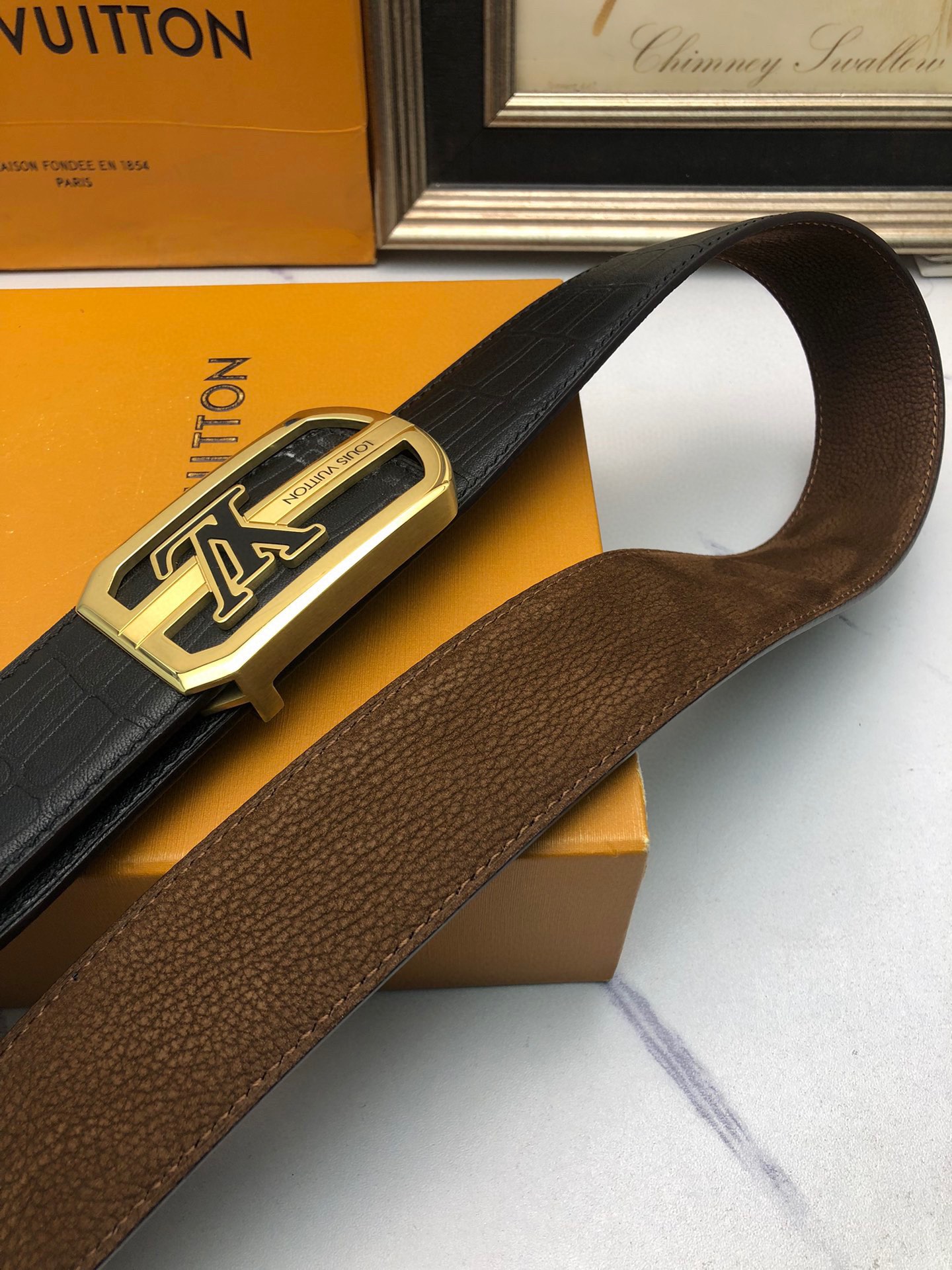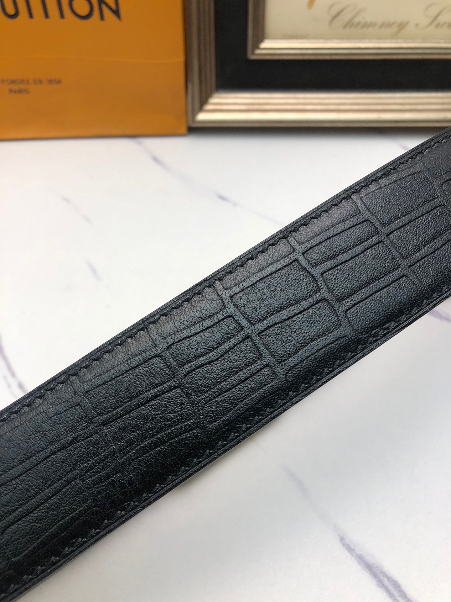 这款皮带是AAAAA 1:1 质量 (非常棒). 使用了和原版一模一样的材料. 商标部分也保持了和一样. 图片拍摄是实物皮带拍摄, 您所收到的实物保证和我们图片一模一样.