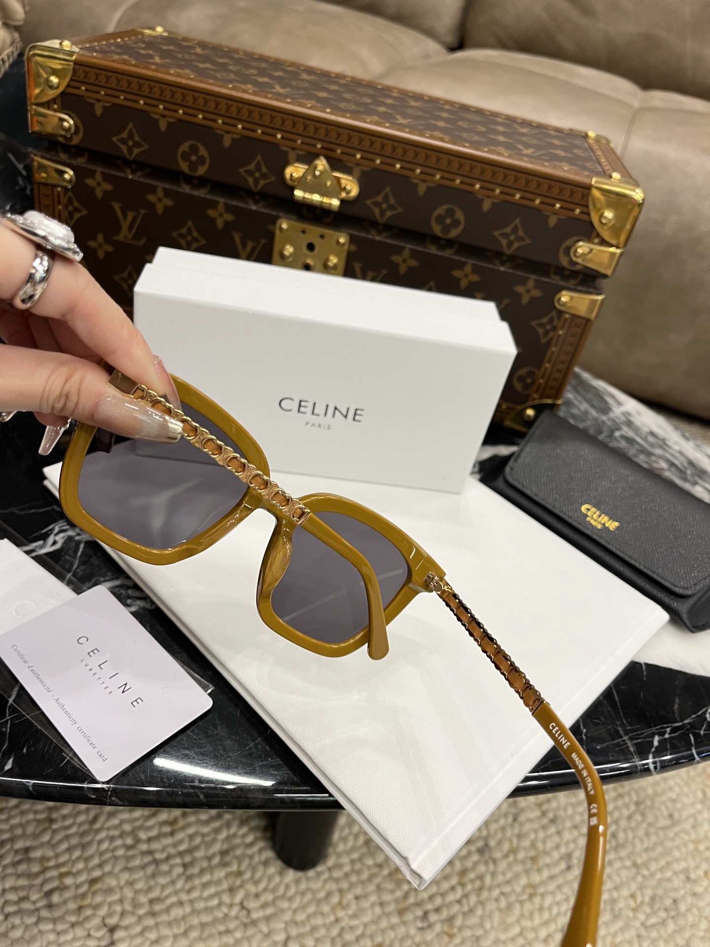 这款太阳眼镜是AAAAA 1:1 质量 (非常棒). 使用了和原版一模一样的材料. 商标部分也保持了和思琳/Celine一样. 图片拍摄是实物太阳眼镜拍摄, 您所收到的实物保证和我们图片一模一样.
