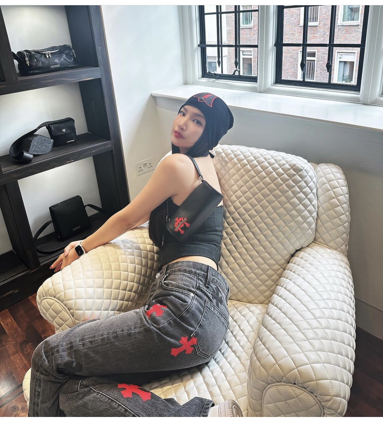 这款包包是AAAAA 1:1 质量 (非常棒). 使用了和原版一模一样的材料. 商标部分也保持了和克罗心/Chrome Hearts一样. 图片拍摄是实物包包拍摄, 您所收到的实物保证和我们图片一模一样.