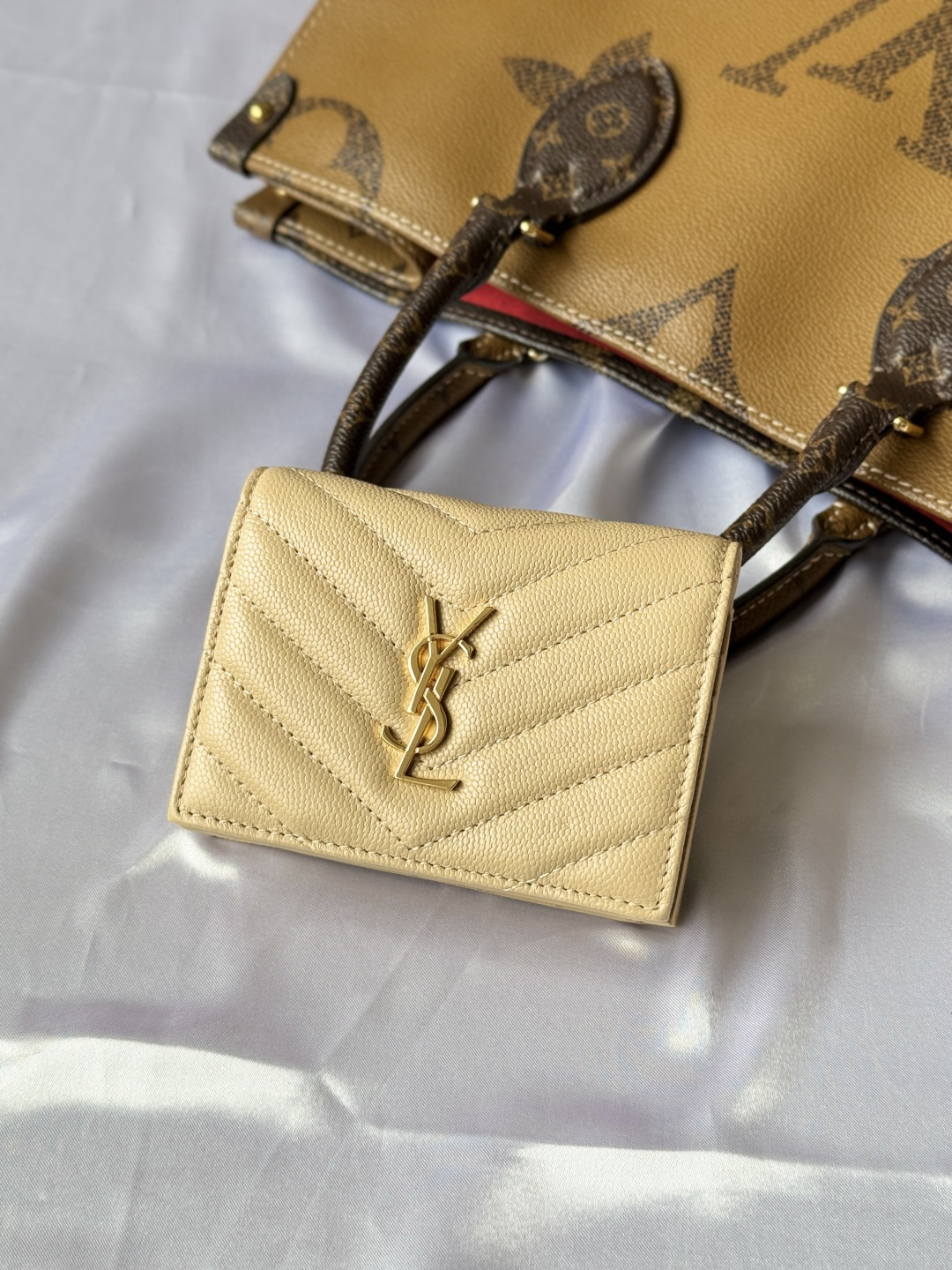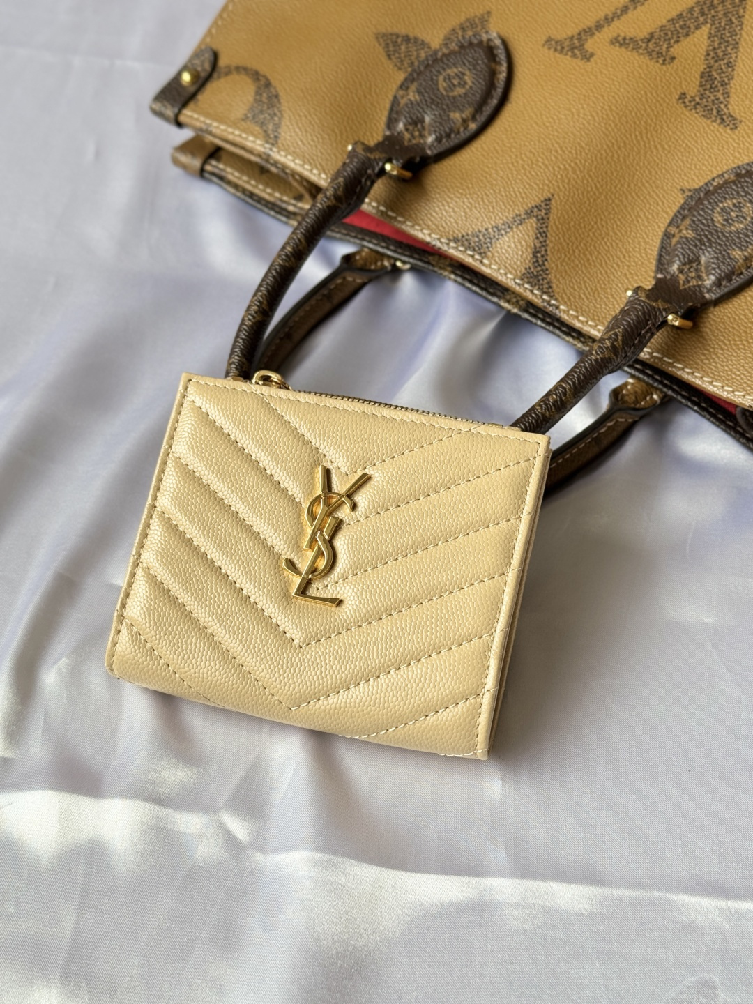 这款钱包是AAAAA 1:1 质量 (非常棒). 使用了和原版一模一样的材料. 商标部分也保持了和圣罗兰/Saint Laurent一样. 图片拍摄是实物钱包拍摄, 您所收到的实物保证和我们图片一模一样.